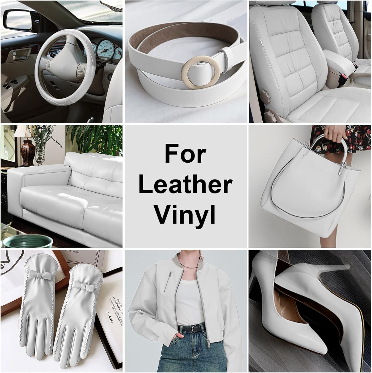- [ For Leather And Vinyl] Perfect for leather and vinyl car seats, steering wheels, sofas, shoes, boots, handbags, office chairs, wallets, belts, jackets, and all kinds of smooth leather products