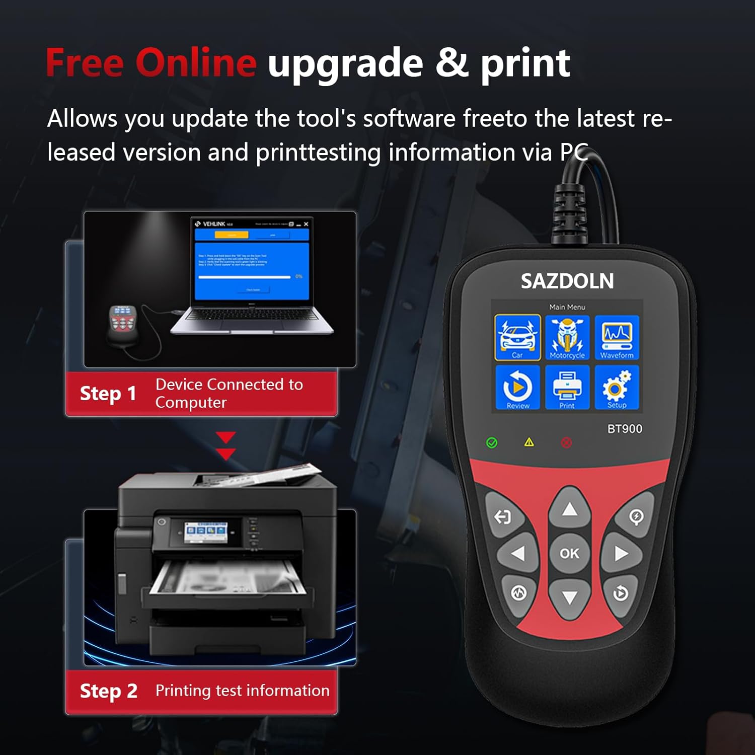 - 【Universal Compatibility】The ultimate 6V/8V/12V battery testing solution for cars, trucks, boats, RVs, motorcycles, and more! Supports 5-3000 CCA batteries across Flooded, AGM, GEL, EFB types. Compliant with SAE/JIS/DIN/BCI/GB standards—no lithium batteries.