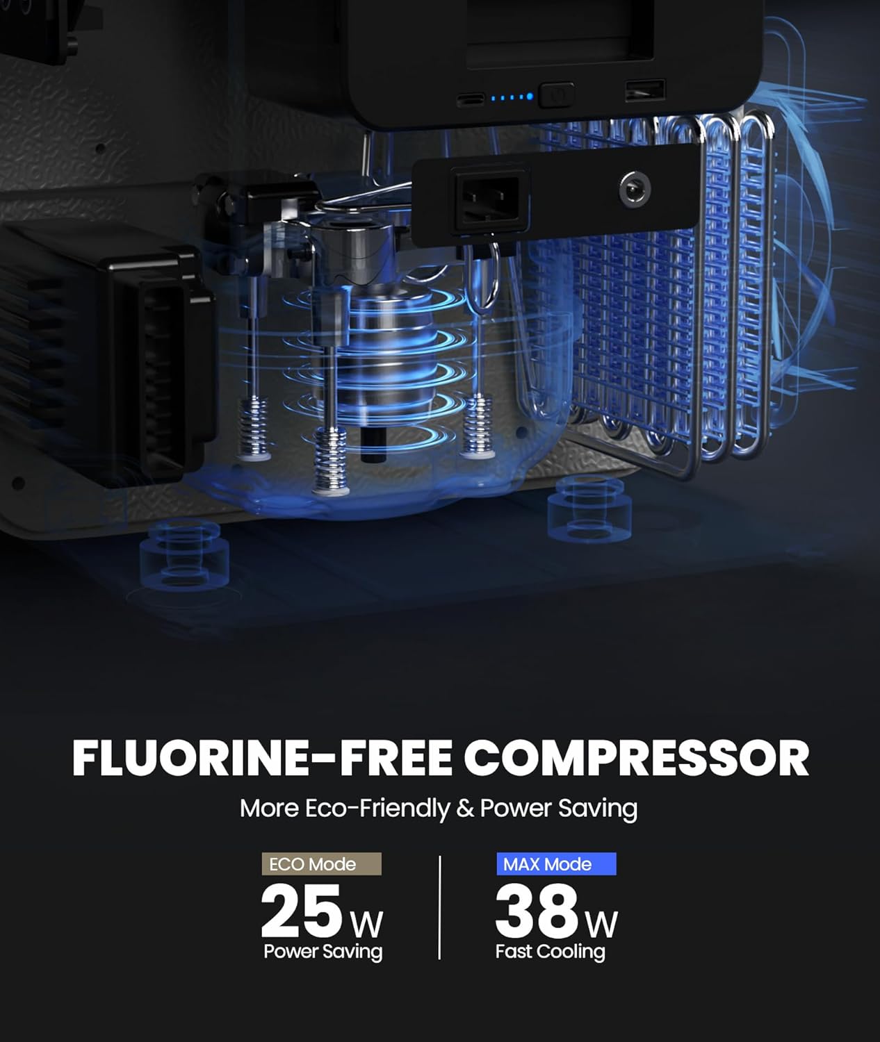 - 10 Mins Cooling down to 32 ℉: The powerful fluorine-free compressor ensures fast cooling down from 77 ℉ to 32 ℉ in just 10 mins and 77 ℉ to -4 ℉ in just 25 mins, and has a thickened EPDM interior (appro.2") provides better insulation and sealing