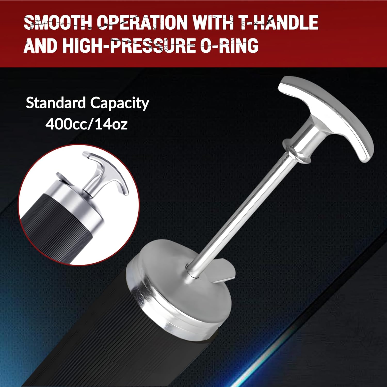 - Smooth & Efficient Operation: The T-handle thick pull rod, combined with a high-pressure plunger O-ring, ensures smooth and efficient grease delivery, minimizing effort and maximizing output during use