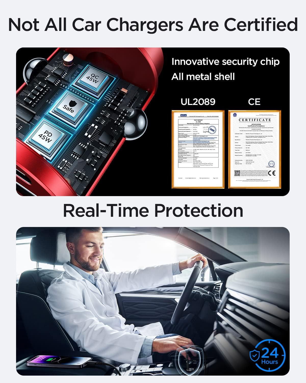 - 2-YEAR PROMISE: We are so confident in our USB C car charger that we are responsible for all quality issues. Not 6 months, not 18 months, but 2-year. It has over-current, over-voltage, overload, overheat and short circuit protection. If you have any problem, please contact us, we will help you solve the problem within 24 hours.