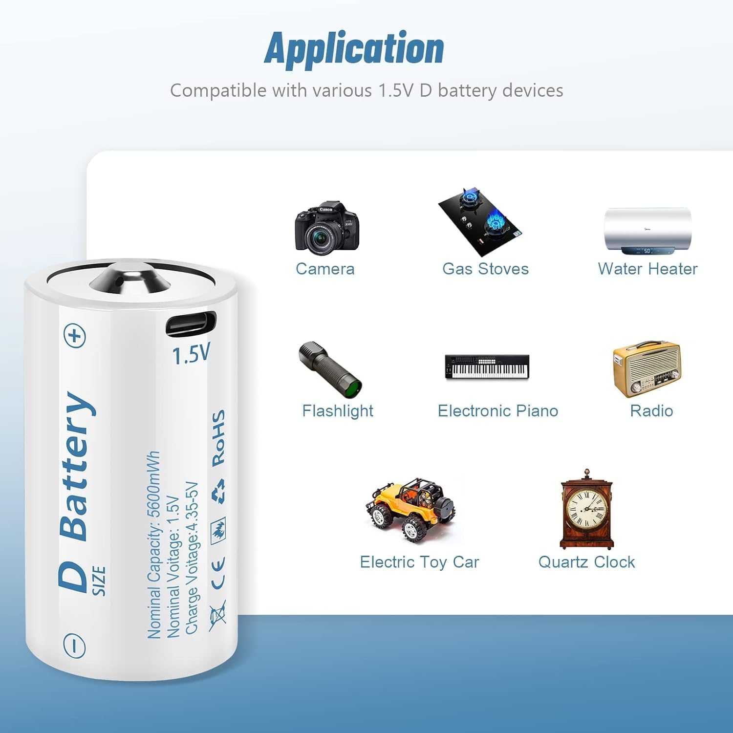 - 【 Rechargeable D Batteries】Rechargeable usb D battery with 1000+ cycles , save your big money comparing with the single use batteries.