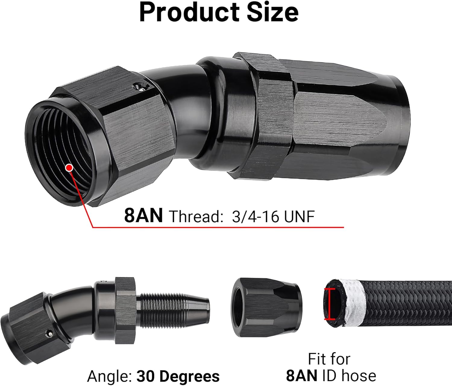 - Application:The AN8 hose end is only work with stainless braided and nylon braided hose .