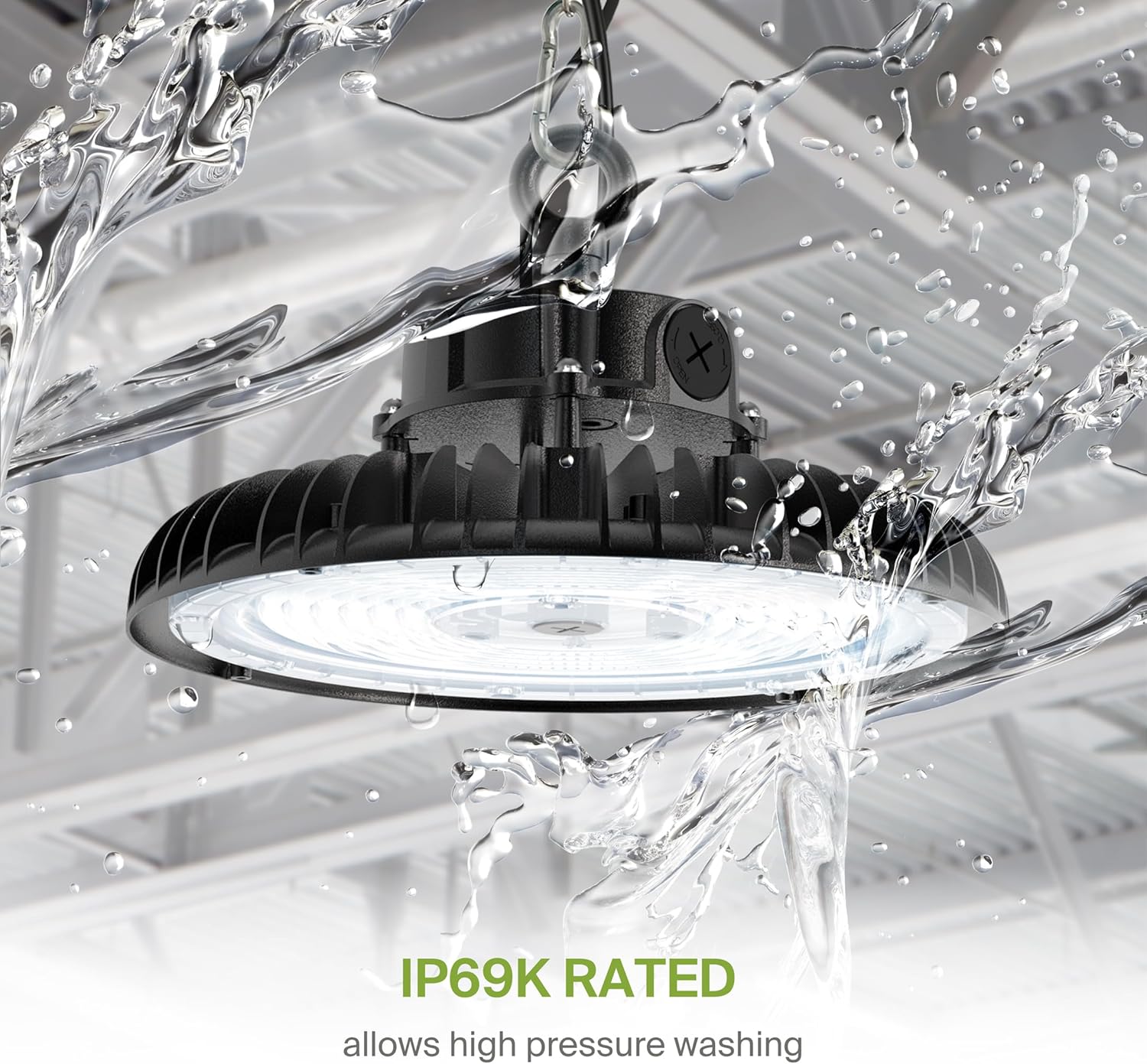 ASD LED High Bay UFO Light Fixture, Commercial Shop Lighting | Dimmable, IP69K Waterproof, DLC Premium, UL Listed | 150W 23000LM 5000K 100-277V | Warehouse, Garage, Workshop, Barn Lamp | Black