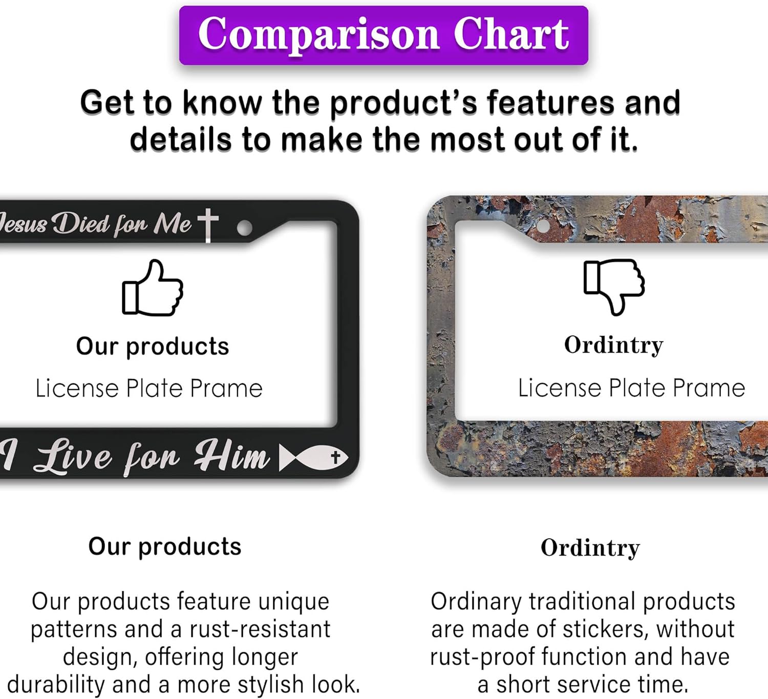 License Plate Cover Black and White License Plate Frames Jesus Died for Me Now I Live for Him Aluminum Metal Car Accessory 2 Pack with Screw Covers Set