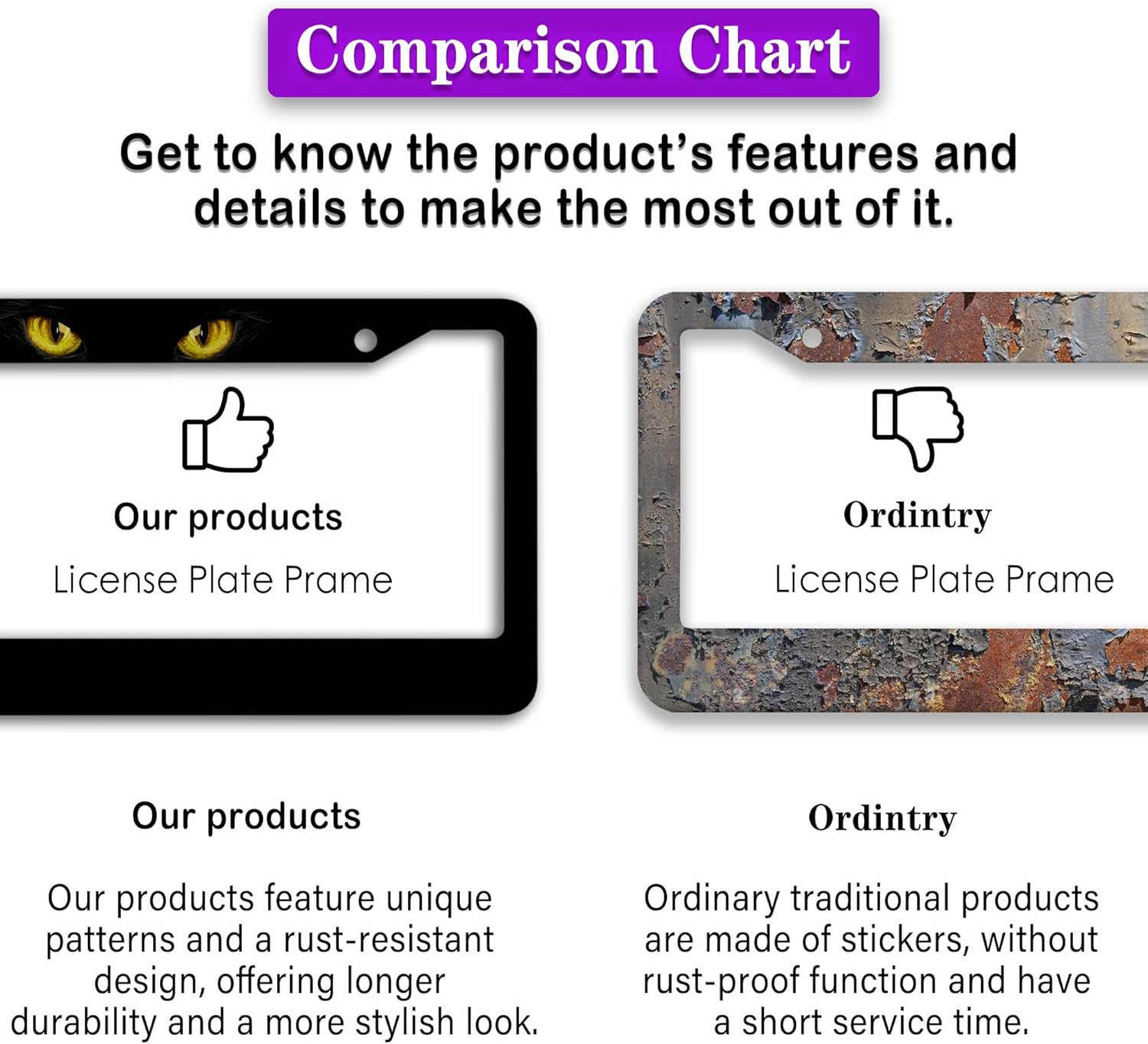 - FUNNY DESIGN: Featuring a unique and customized design, this license plate frame creates an eye-catching and bold statement for your vehicle. Not only does it add a touch of personality to your car, but it also makes for a great holiday gift, souvenir, or decorative piece for family, friends, and colleagues. Elevate your vehicle's style while sharing a laugh!