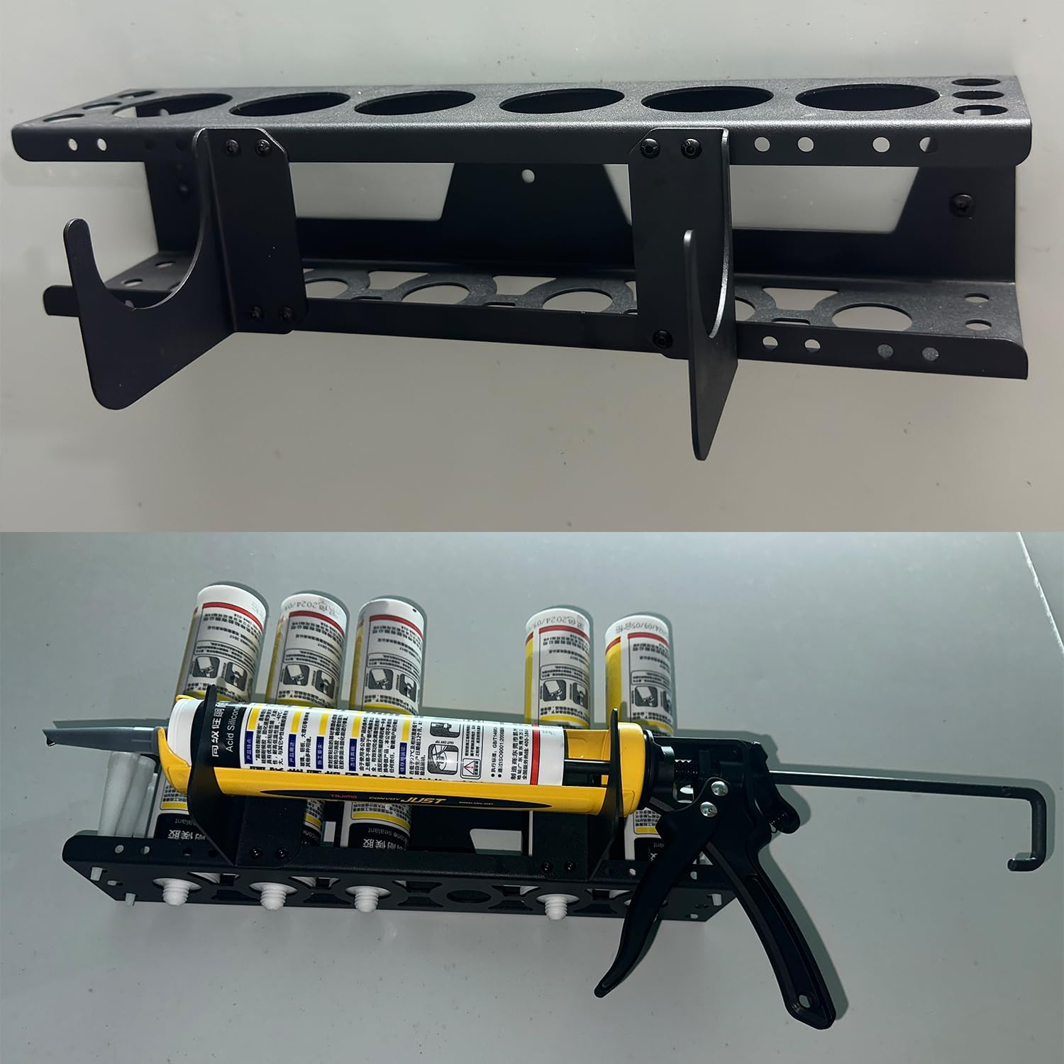 - [Space saving] With this caulking gun rack, you can keep 6 tube's of caulking /caulk gun together on a wall saving space, conveniently keeps everything you need together in a small space. So you could find them in once time you want find them.