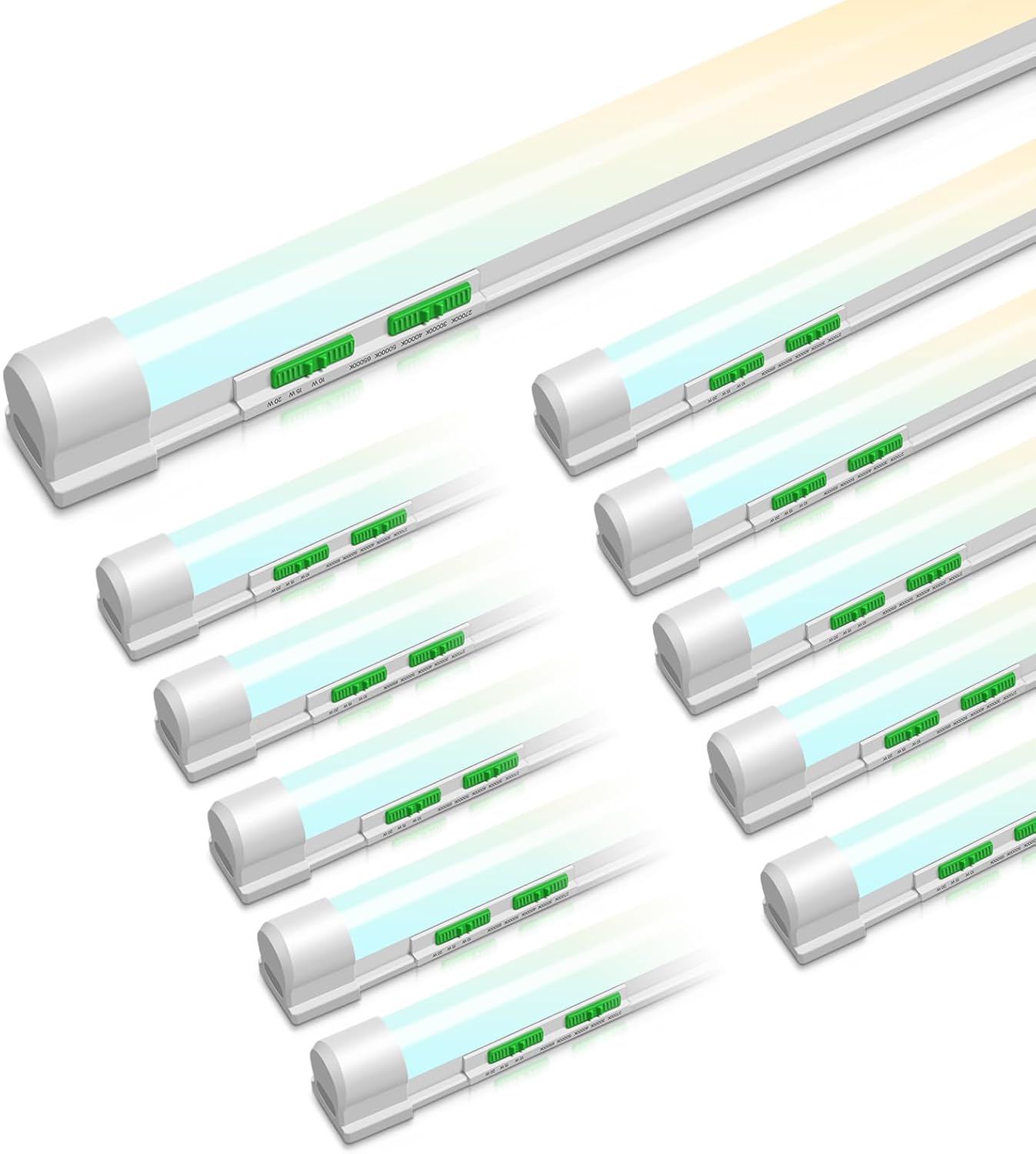 ALUSSO® 4FT LED Shop Lights with 5CCT Selectable for Garage Workshop,2700K/3000K/4000K/5000K/6500K,2100LM,T8 Adjustable Integrated Single Fixture,Corded Electric with ON/Off Switch,10 Pack (T8)