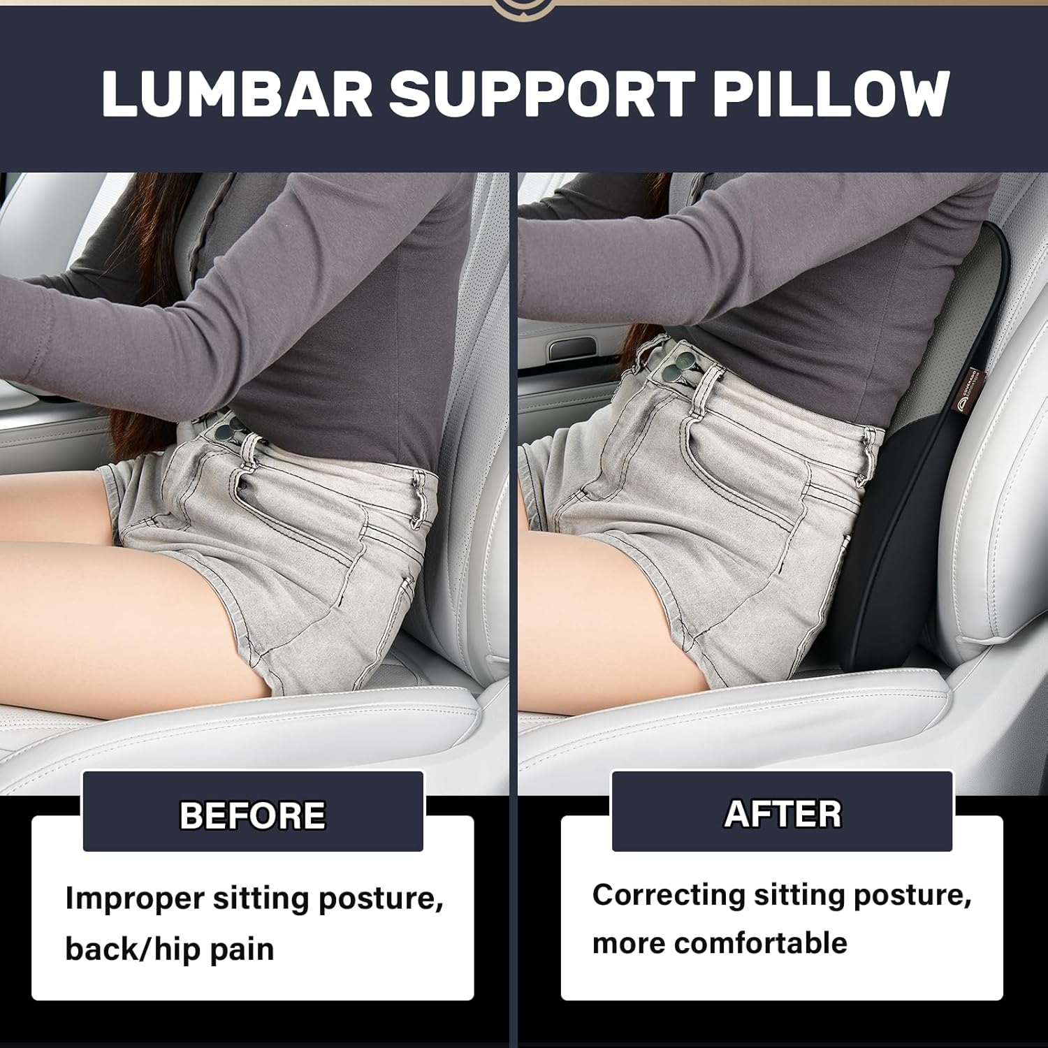 - Back Pain Relief: Our lumbar support pillow uses high-density memory foam, which has slow-rebound performance, ensures strong support to your back. This lumbar pillow absorbs and relieves stress on your body, corrects sitting posture and delivers maximum comfort for your body, effective back pain relief. Making it perfect for when you're driving long distances and taking a break at home