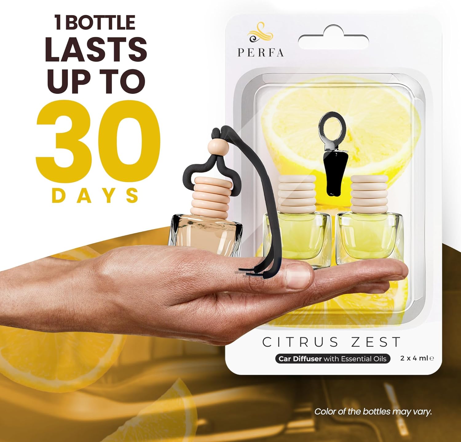 - INFUSED WITH ESSENTIAL OILS - Our car vent air freshener is expertly crafted with the finest citrus oil. This premium car freshener and car oil diffuser enhances your driving experience with a soothing and long-lasting scent. Perfa’s car freshener diffuser goes beyond the ordinary, creating a therapeutic atmosphere that promotes focus and relaxation while on the road.