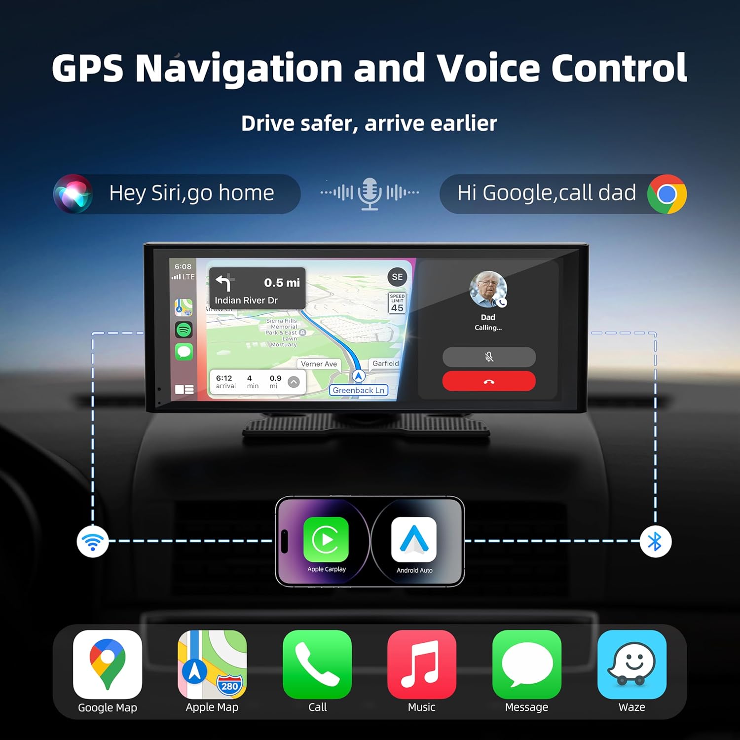 - Compatible Devices : Compatible with all models that support CarPlay/Android Auto, Smartphone, iPhone
