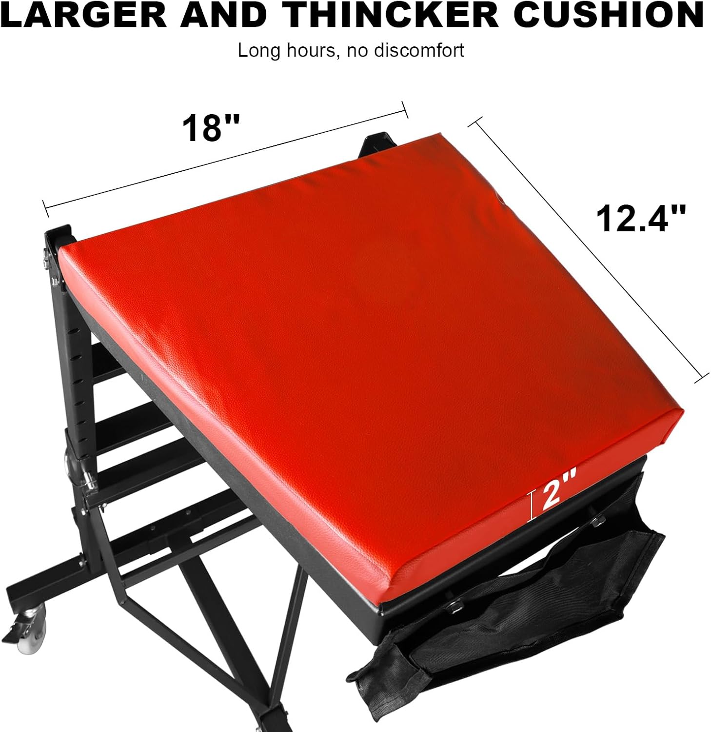 - Enhanced Comfort:Our high top creeper features a 2-inch thick, 12.4x18-inch widened ethylene-based cushion, the high creeper provides added comfort during prolonged maintenance tasks.