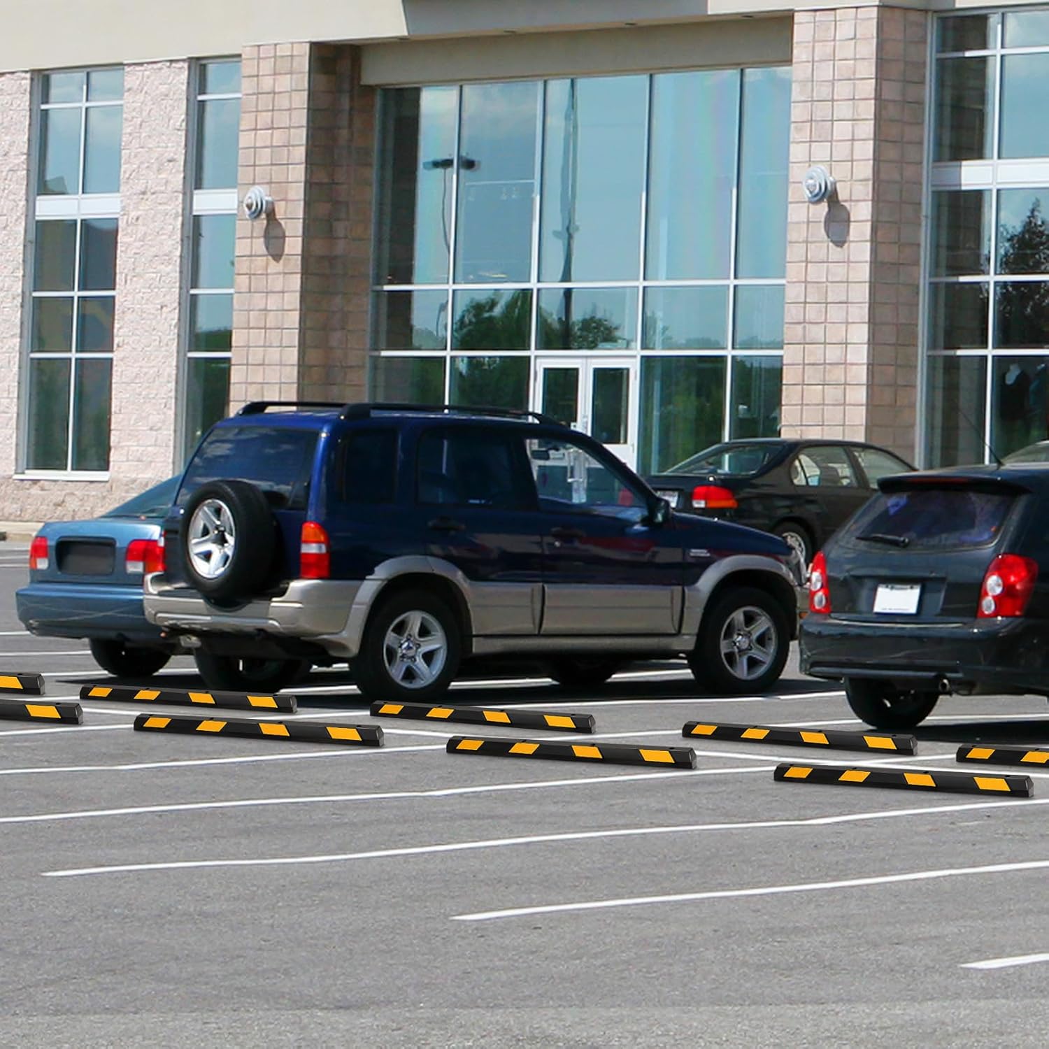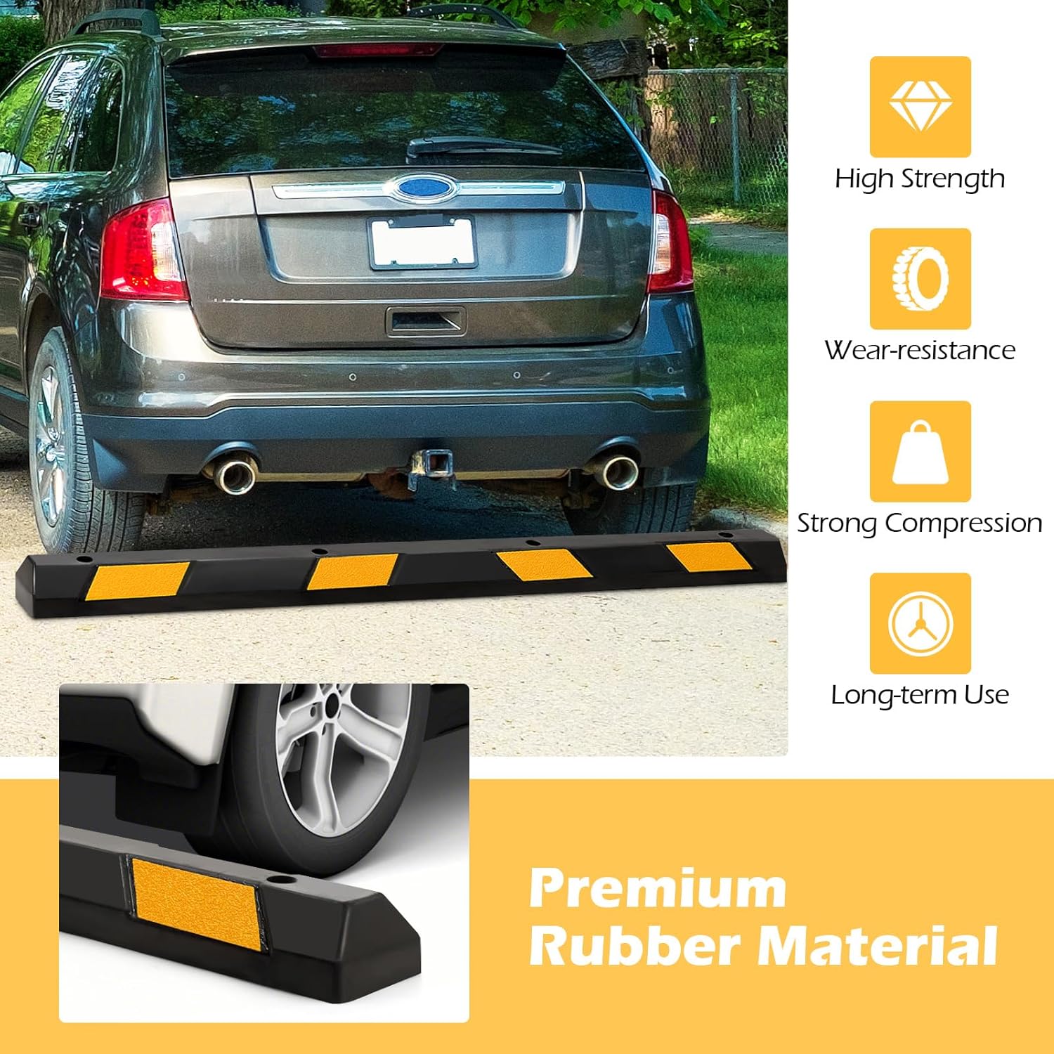 - 【 High Visibility 】 Featuring 4 yellow reflective stripes on each side, the rubber parking curb enhances visibility in low-light conditions. This safety feature is crucial for guiding drivers during parking maneuvers, helping prevent damage to vehicles.