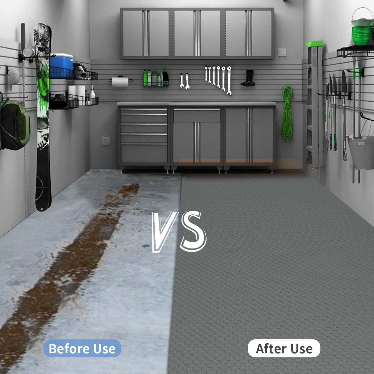 - EASY TO INSTALL & CLEAN: Quick and easy to install by just rolling out the floor mat on the surface for a smooth and even display.Our heavy duty garage floor protector mat are very easy to clean with the vacuum cleaner, brooms, and wet or dry mop.
