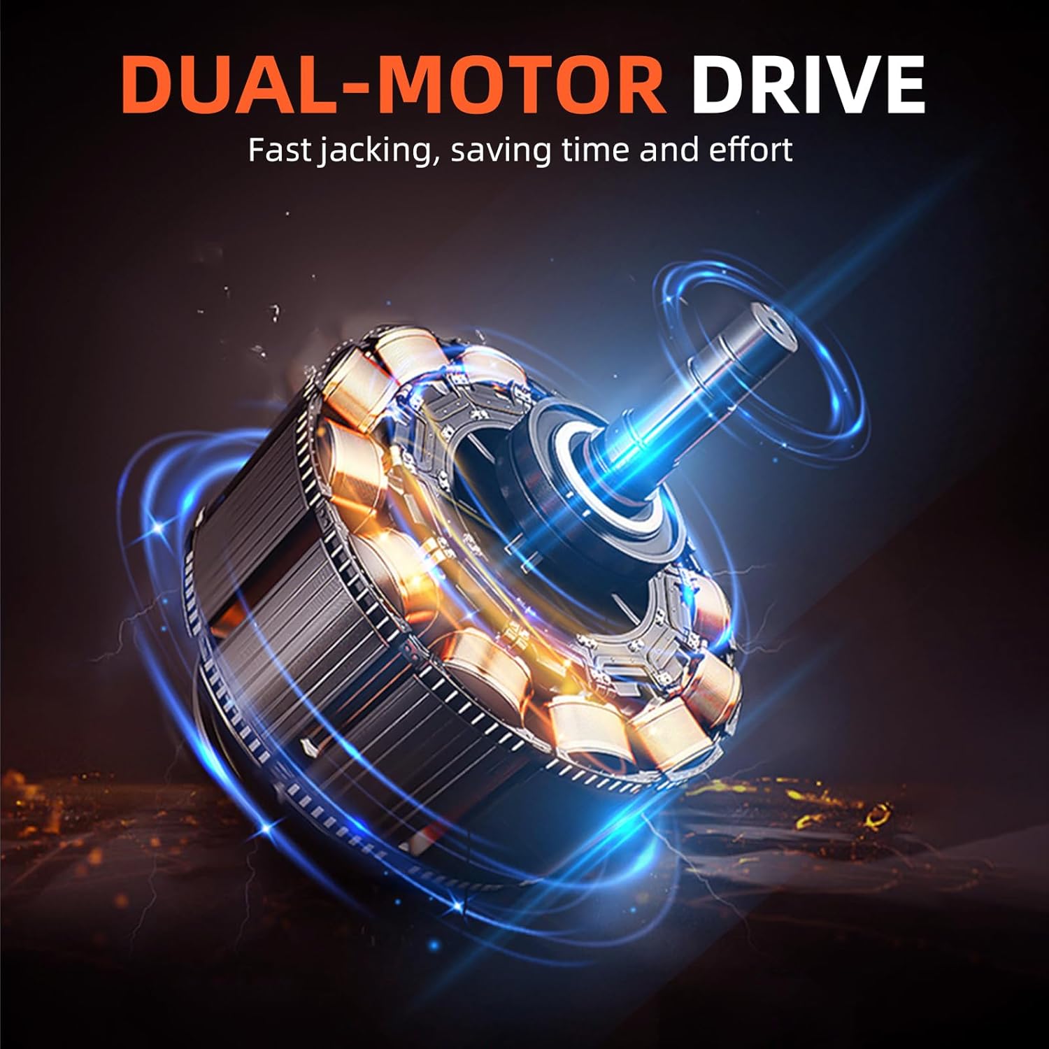 - Safety Guarantee: This 5T electric jack features an automatic stop at max height to prevent sudden drops during power failure, with manual release for safe lowering. Built-in circuit breaker avoids overload