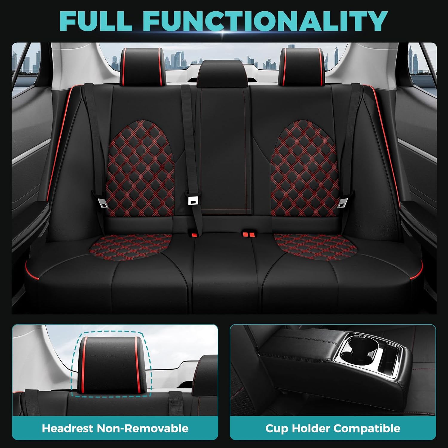 - ăMaintain Existing Functionalityă: Tailored to fit snugly all details of car seat covers for Toyota camry and ensure the full function, not affecting at all the use of airbag, armrests, safety belt, child seats and seat adjustments. full wrap front car seat covers come with seat back organizer for improved user convenience.
