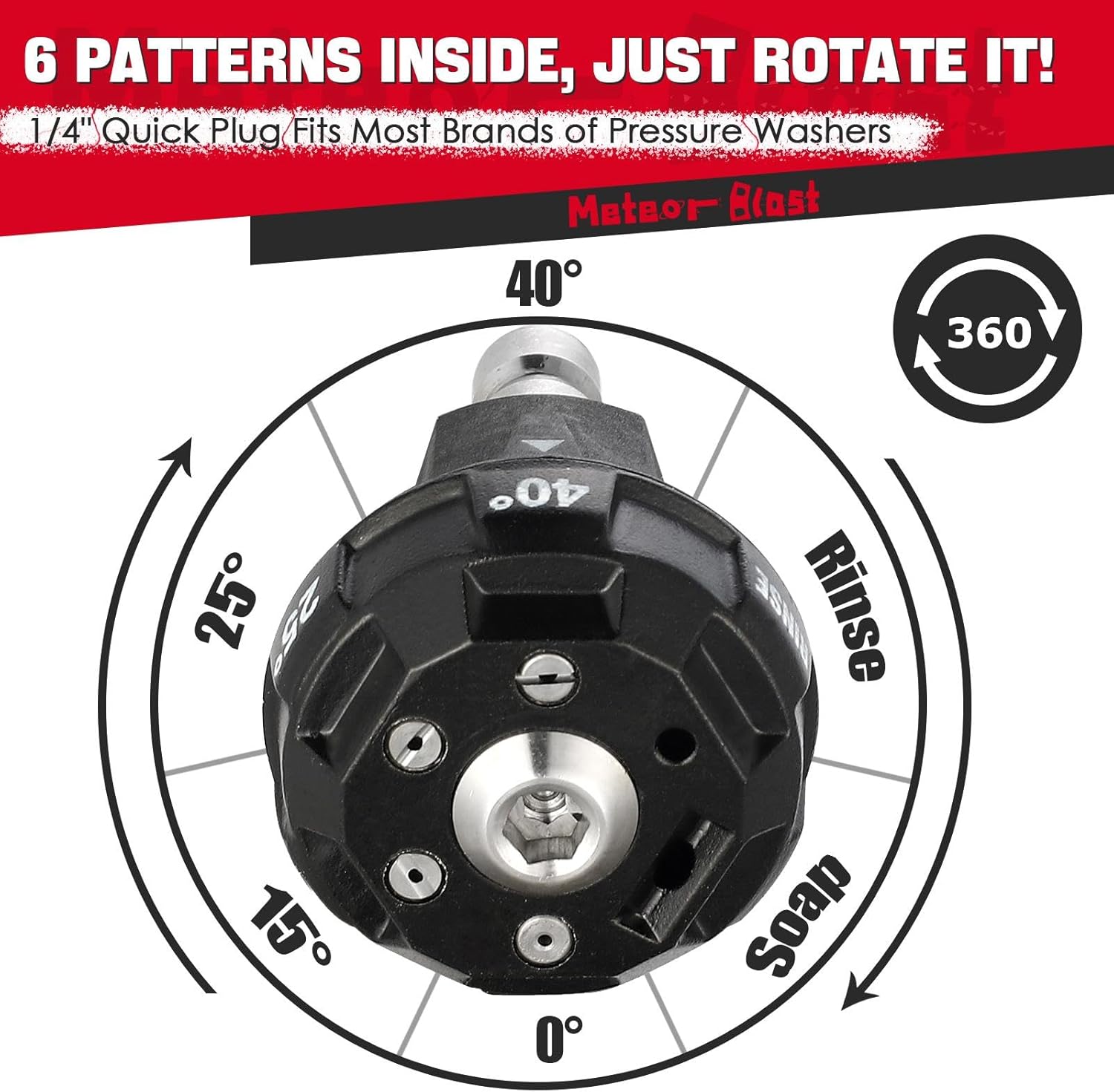 Meteor Blast Pressure Washer Nozzle, 6-in-1 Quick Change over and Adjustable, Power Washer Tips Replacement with 1/4 inch Quick Connector, MAX 4500PSI 2.0GPM for power washer and pressure washer
