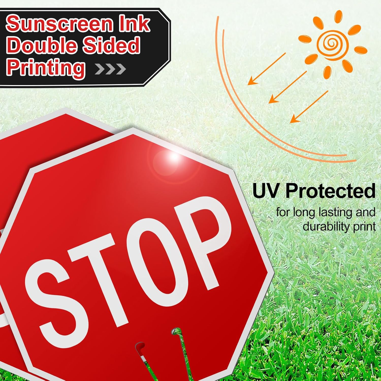 - Not Easy to Fade: the red and white printing on our stop signs is eye catching and clear; Printed with sunscreen ink, not easy to fade, suitable for outdoor use and can withstand various extreme weather