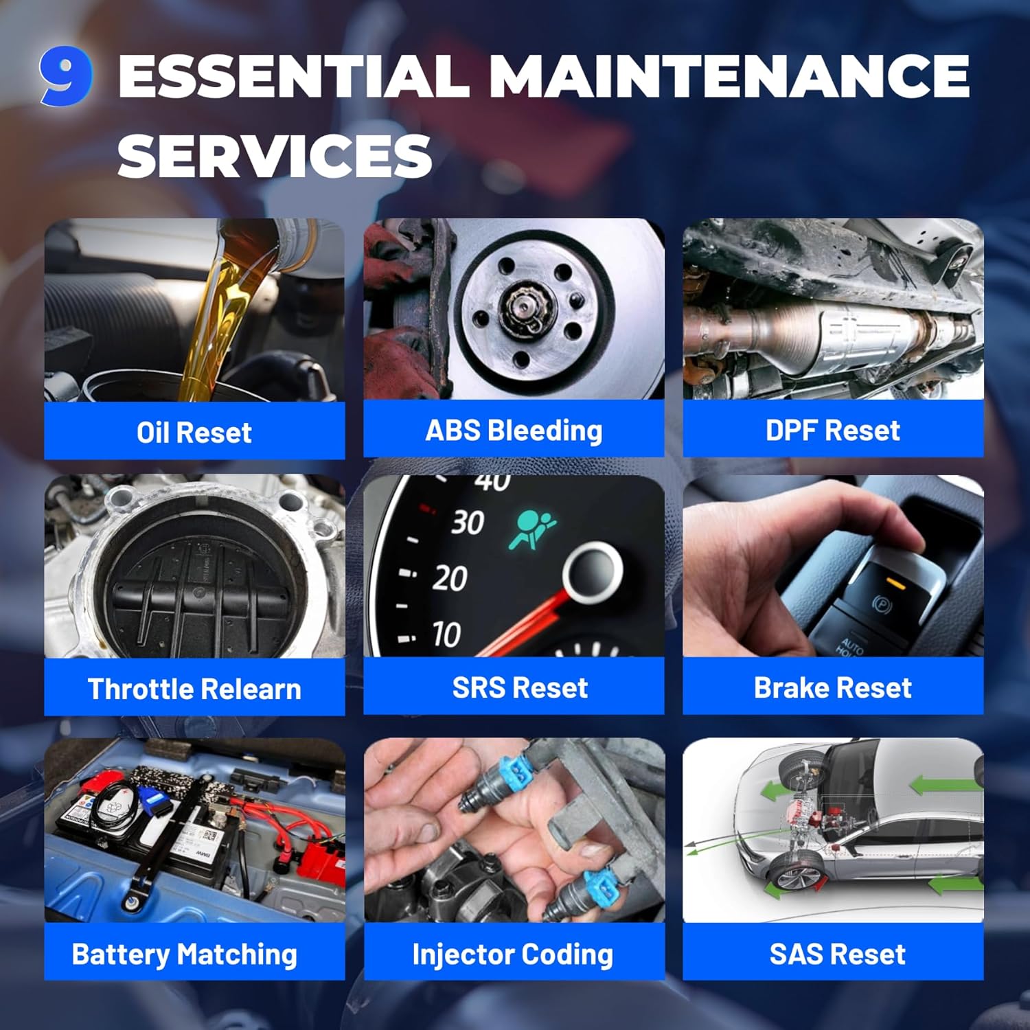 - 9 ESSENTIAL MAINTENANCE FUNCTIONS: AD600 Pro offers support regular vehicle maintenance with 9 essential maintenance functions, including ABS Bleeding, Battery Matching, Brake Reset, Oil Reset, DPF Regeneration, Throttle Relearn, Injector Coding, SAS Reset, and TPMS Reset. These features make the topdon ad600 pro an reliable obd2 scanner tool for both routine vehicle maintenance and advanced auto repairs