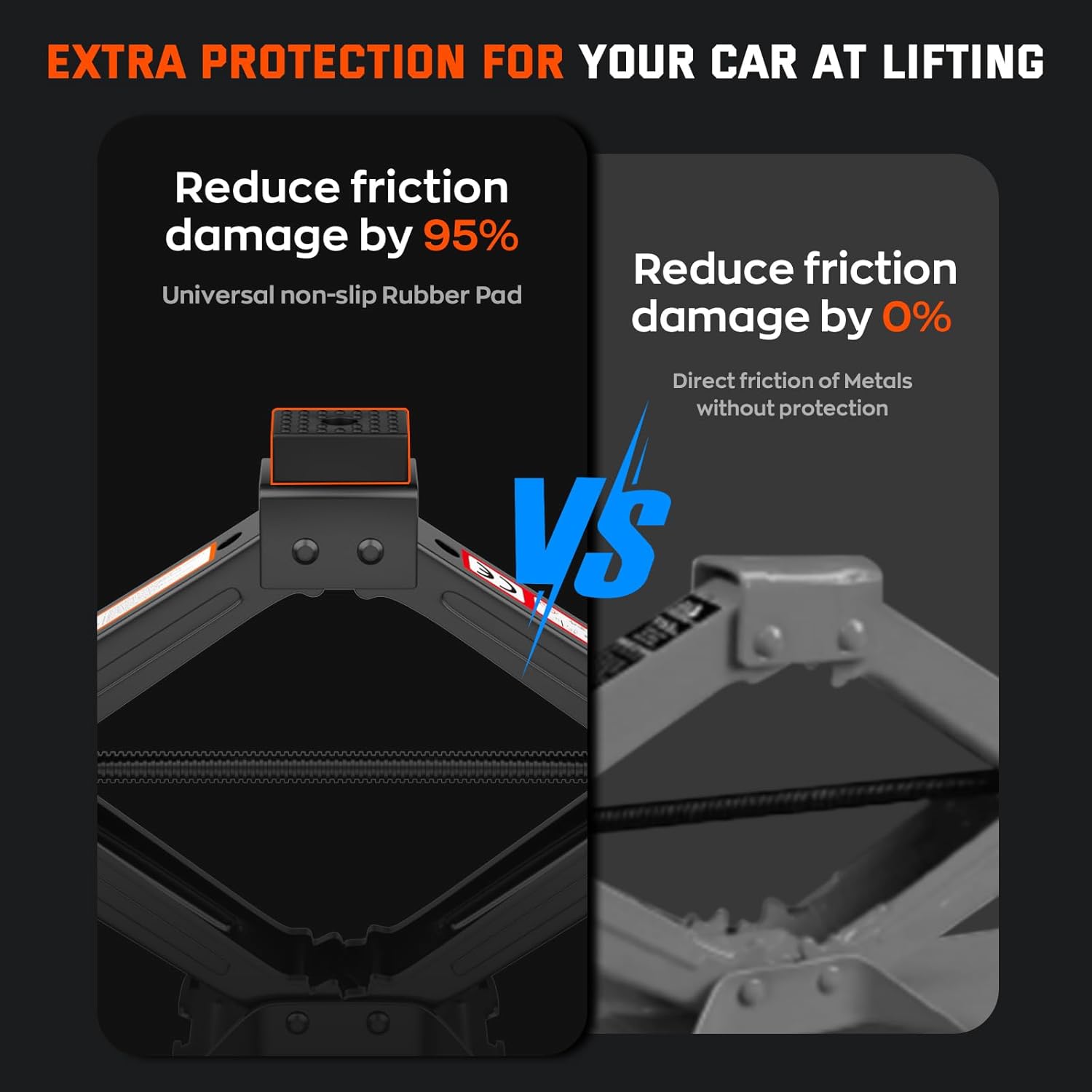 - 👍【Reliable and Safety】 This car jack is Constructed with high-strength cold-rolled steel and a widened base for increased stability. and this jack comes with non-slip rubber on the jack head to protect your vehicle's chassis and ensure optimal safety during lifting.