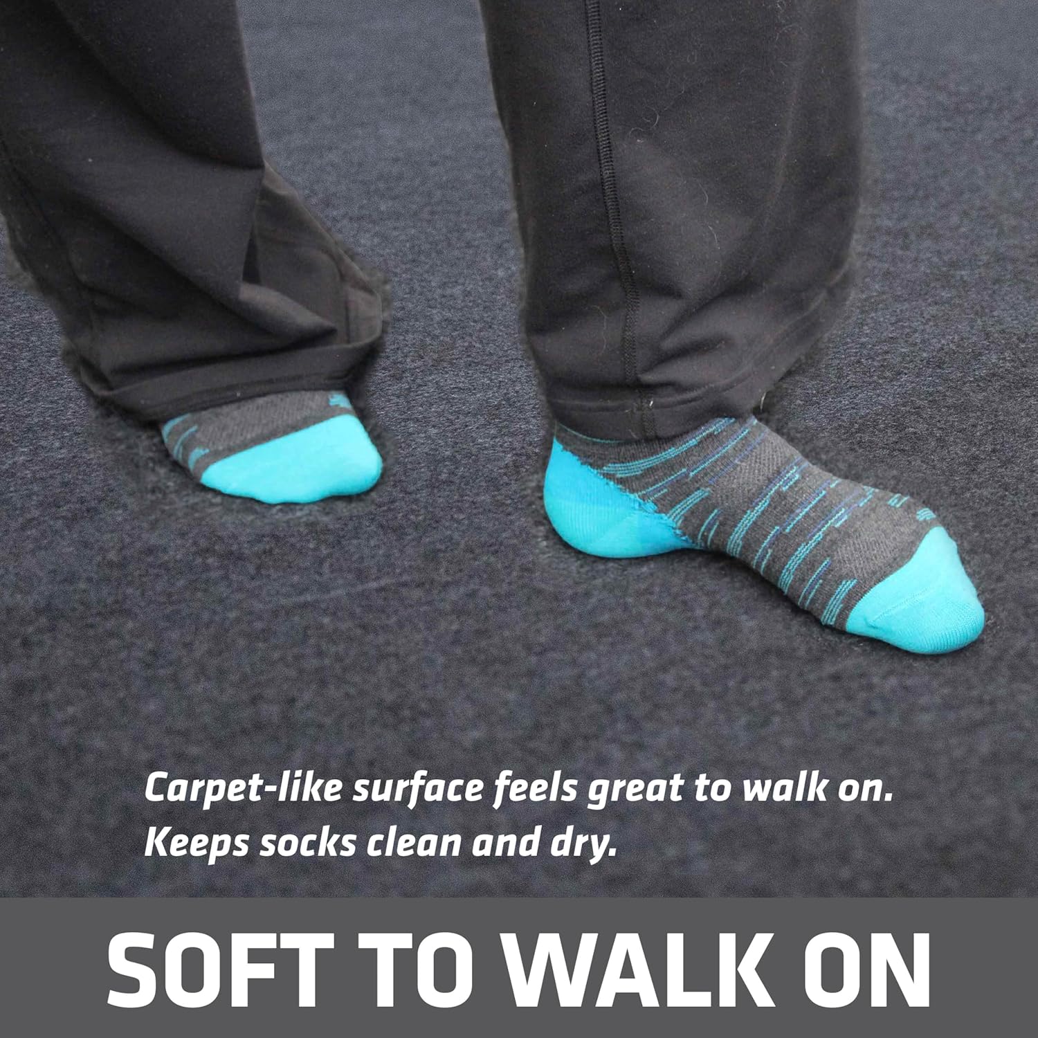 - (MADE IN THE USA) DURABLE MATERIAL: The top layer of our mat consists of a non-woven polyester fabric that is made from over 50% recycled contents. The bottom layer features a liquid bonded waterproof backing made from polyolefin and is BPA, PFAS, & Phthalate-free.