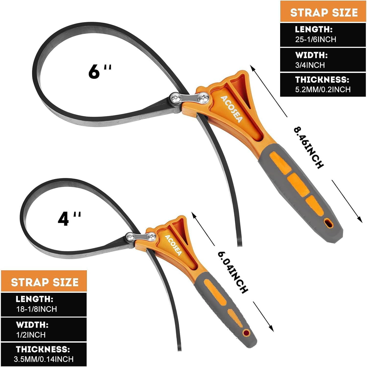 2-Pack Strap Wrench,Oil Filter Wrench with Diameter 6" and 4" Heavy Duty Rubber Strap,Adjustable Blet Wrench as Jar Opener,Water Filter,Plumbing,Sink Wrench Faucet Tool