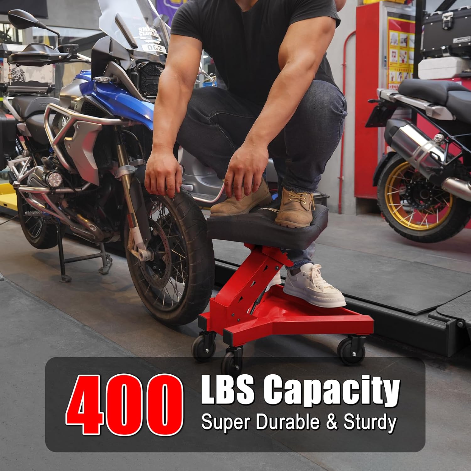 - 【400 LBS & 360°Swivel】The flexible 360° rotating rolling stool provides greater range of motion and movement. The mechanic stool/automotive creeper is specially designed with a thick angle steel frame for long-lasting performance and reliability and footrest. Its design can withstand heavy use, with an overall weight capacity of around 400 pounds. It is a sturdy and practical choice for use in garages, workshops, auto cars, and other places