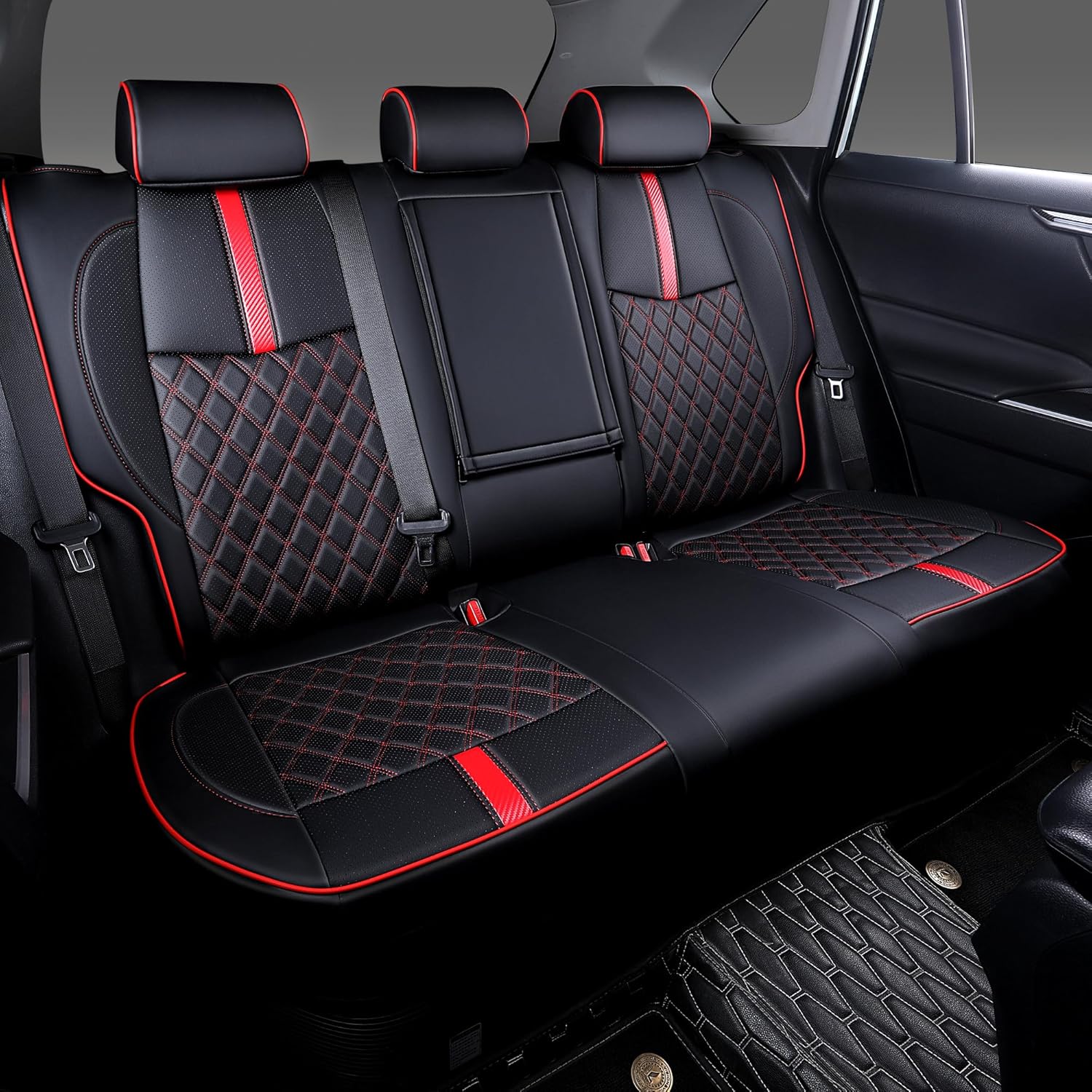 Custom Fit RAV4 Seat Covers for 2019-2025 Toyota RAV4 Hybrid LE,XLE,XLE Premium,Limited Full Coverage Waterproof Leather Car Seat Covers Full Set (Black with Red Trim)