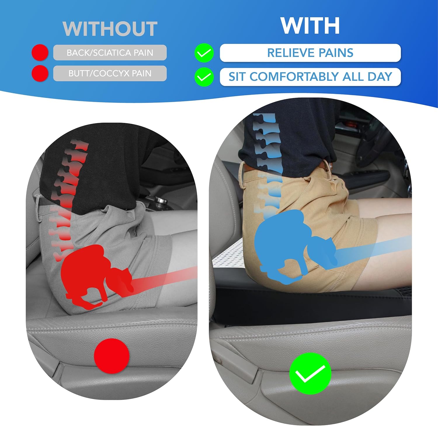 - Excellent car seat cushion - It is combines comfort and support, for your family, loved, and friends to bring a better life and healthy posture into their daily lives, relieving pressure