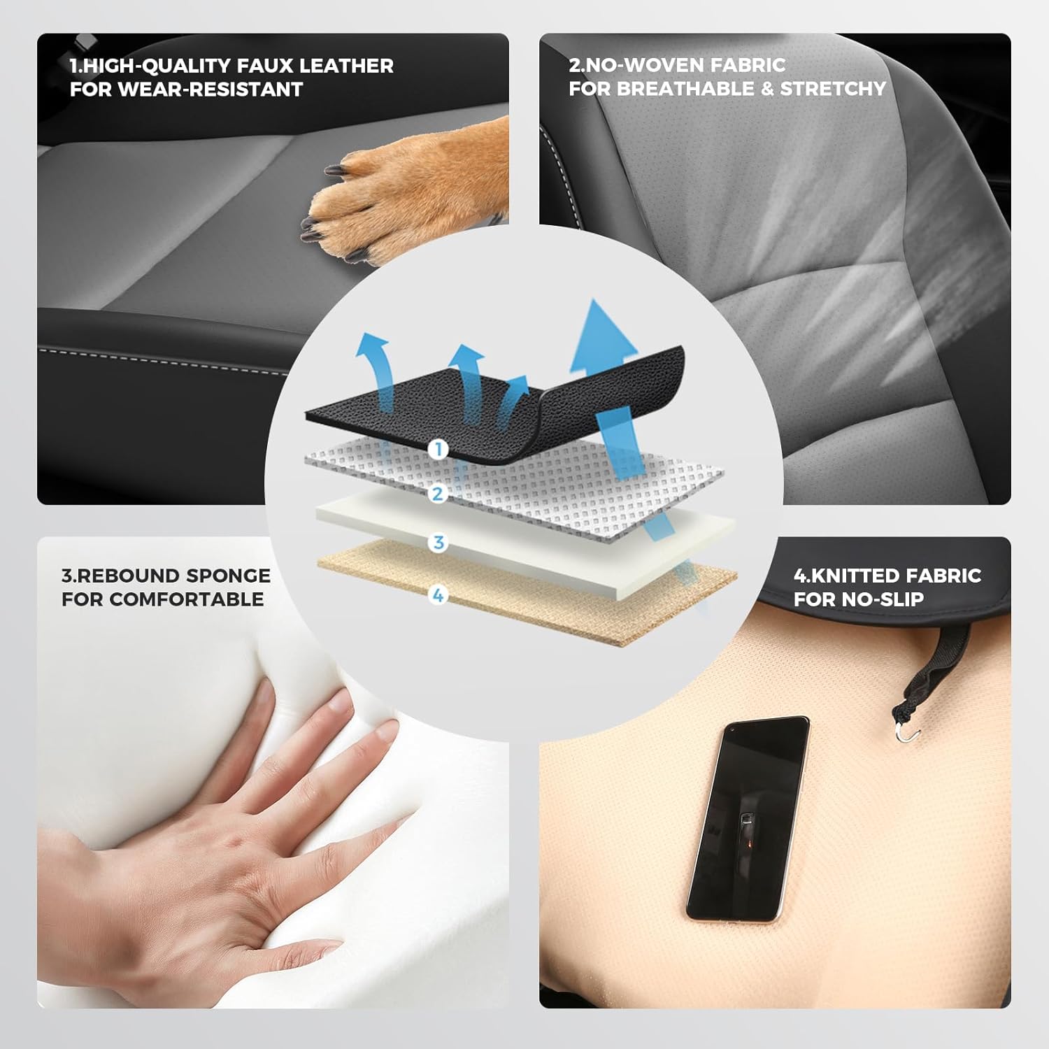 - Premium Car Seat Protection - These waterproof car seat covers feature a four-layer construction, providing superior protection against spilled coffee, pet scratches, and the hot sun. They are easy to clean with just a damp cloth, ensuring your car seat covers last for a long time.