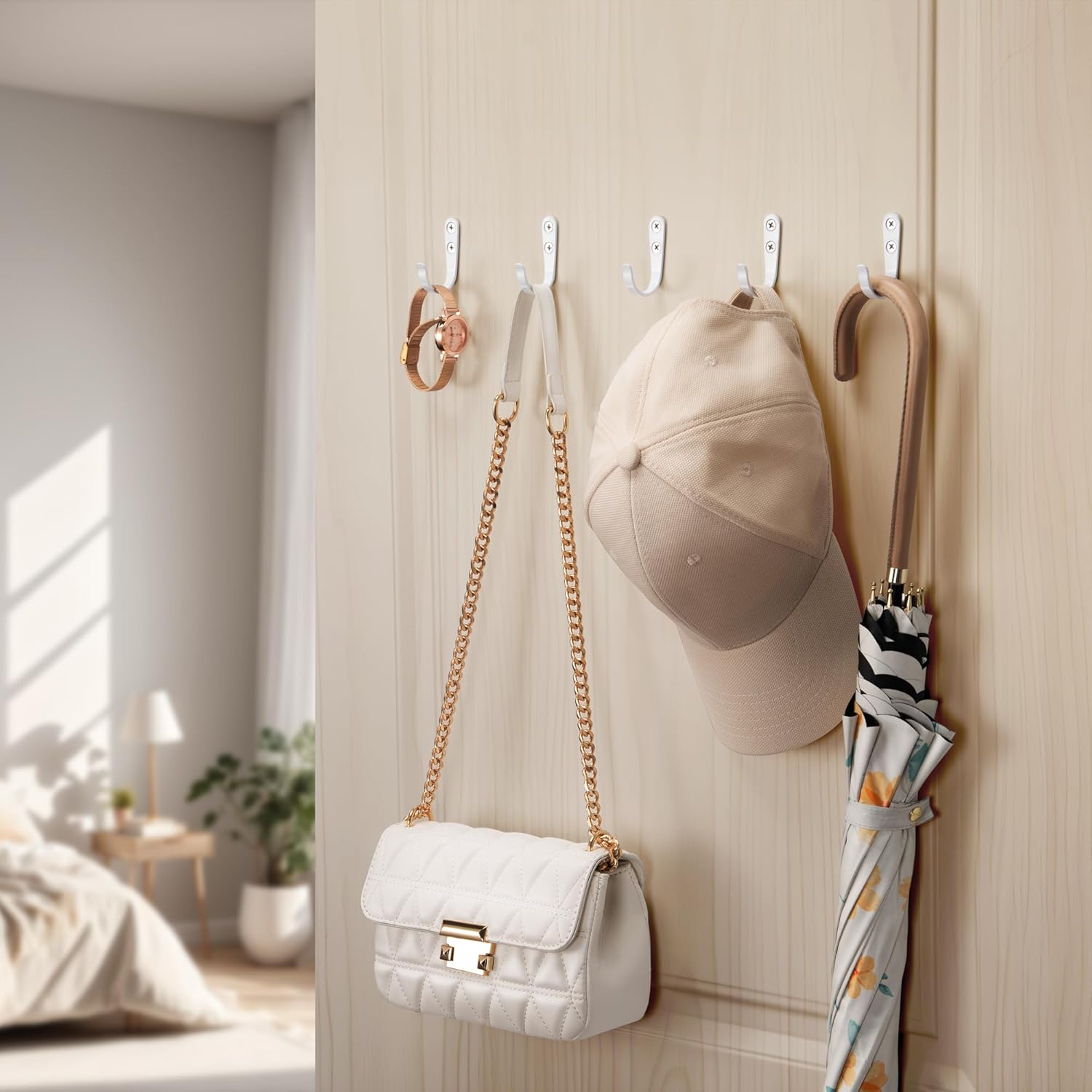 - Wide Application: Ideal for hanging coats, hats, towels, bags, keys, necklaces, coffee cups, belts, handbags, baskets, cookware, tools, and more—keeping your space clutter-free and organized.