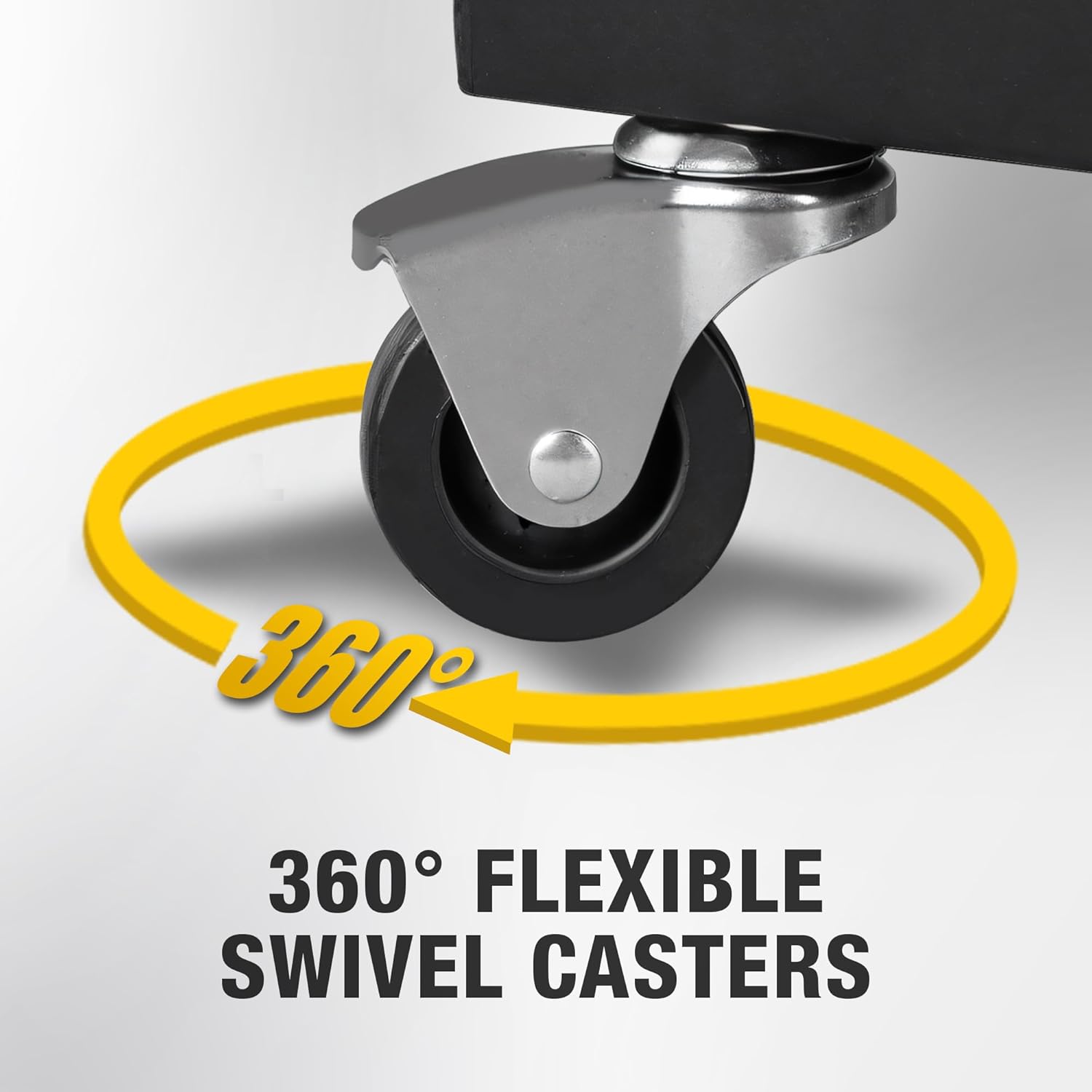 - Smooth and Flexible Movement: Equipped with 4x 360Β° swivel casters, this rolling stool for garage ensures effortless mobility as a mechanics rolling stool or shop rolling stool, covering all directions for work stools with wheels.
