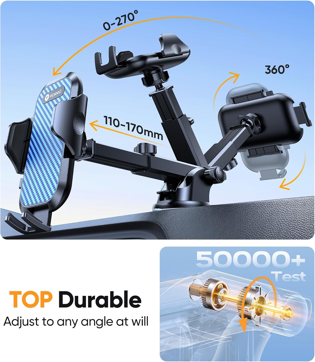 - [One-Second Release – Drive with Ease] Mount or remove your phone in one second with the quick-release button. The high-quality carbon fiber panel stays clean, scratch-free, and fingerprint-resistant. Trusted by 9.5M+ drivers, VICSEED delivers the most durable and reliable car phone holder mount.