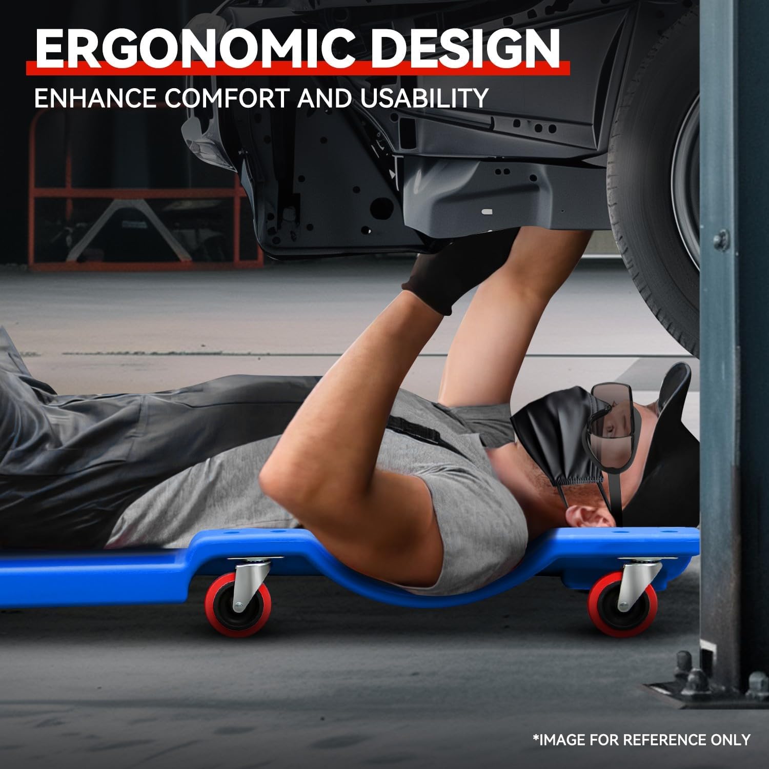 Auto Dynasty 36 Inches Mechanic Creeper, Automotive Garage Repair Low Profile Under Car Rolling Creeper with Padded Headrest, Plastic, Blue