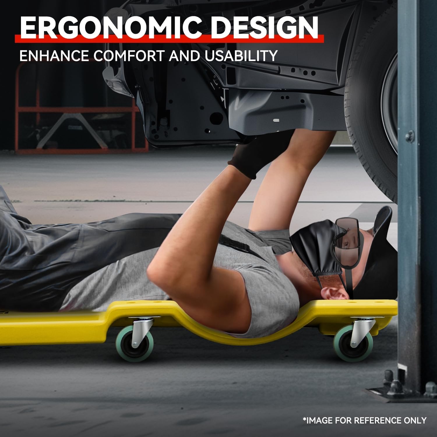 - Ergonomics Design: This Creeper can enhance comfort and usability with its rugged ergonomics design, which can give you more support when sitting slowly on the end of the creeper, and lying back to rest your head on the padded headrest to give you extra relief