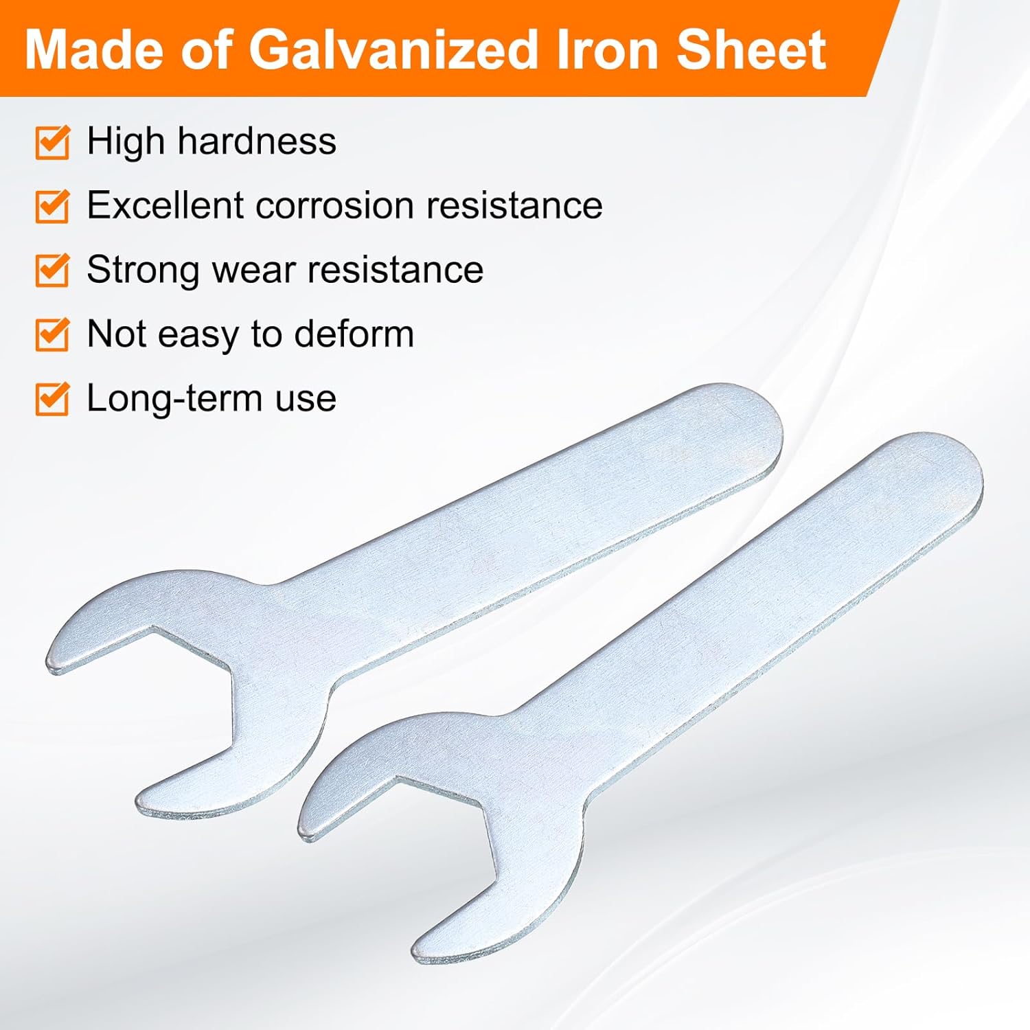 - Long Lasting - Our single open-end wrench is made of an iron plate, which has high hardness and excellent corrosion resistance. The surface galvanizing improves its wear resistance, keeps its surface smooth and reduces wear, is not easy to deform, and can be used for a long time.