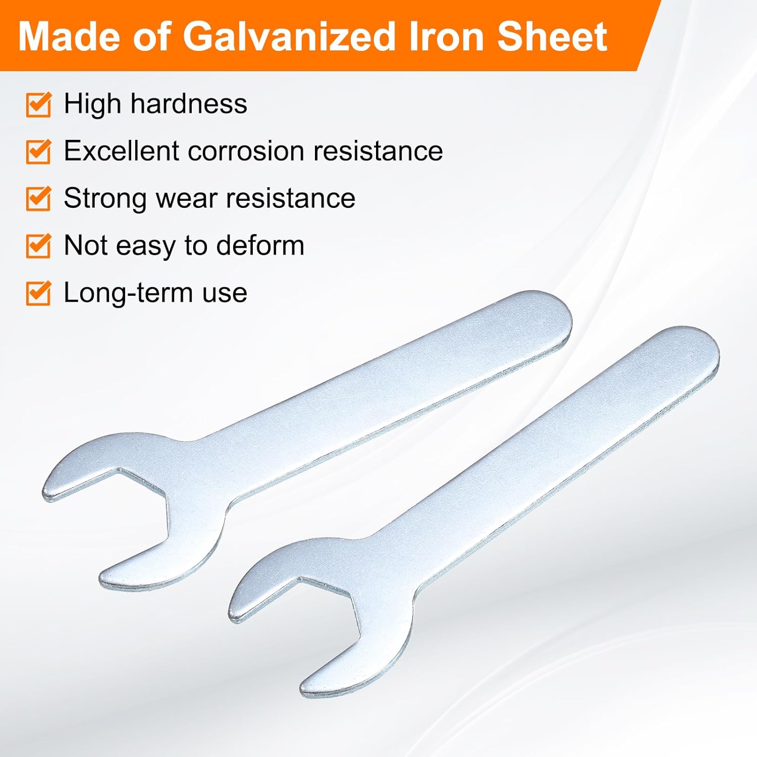 - Long Lasting - Our single open-end wrench is made of an iron plate, which has high hardness and excellent corrosion resistance. The surface galvanizing improves its wear resistance, keeps its surface smooth and reduces wear, is not easy to deform, and can be used for a long time.