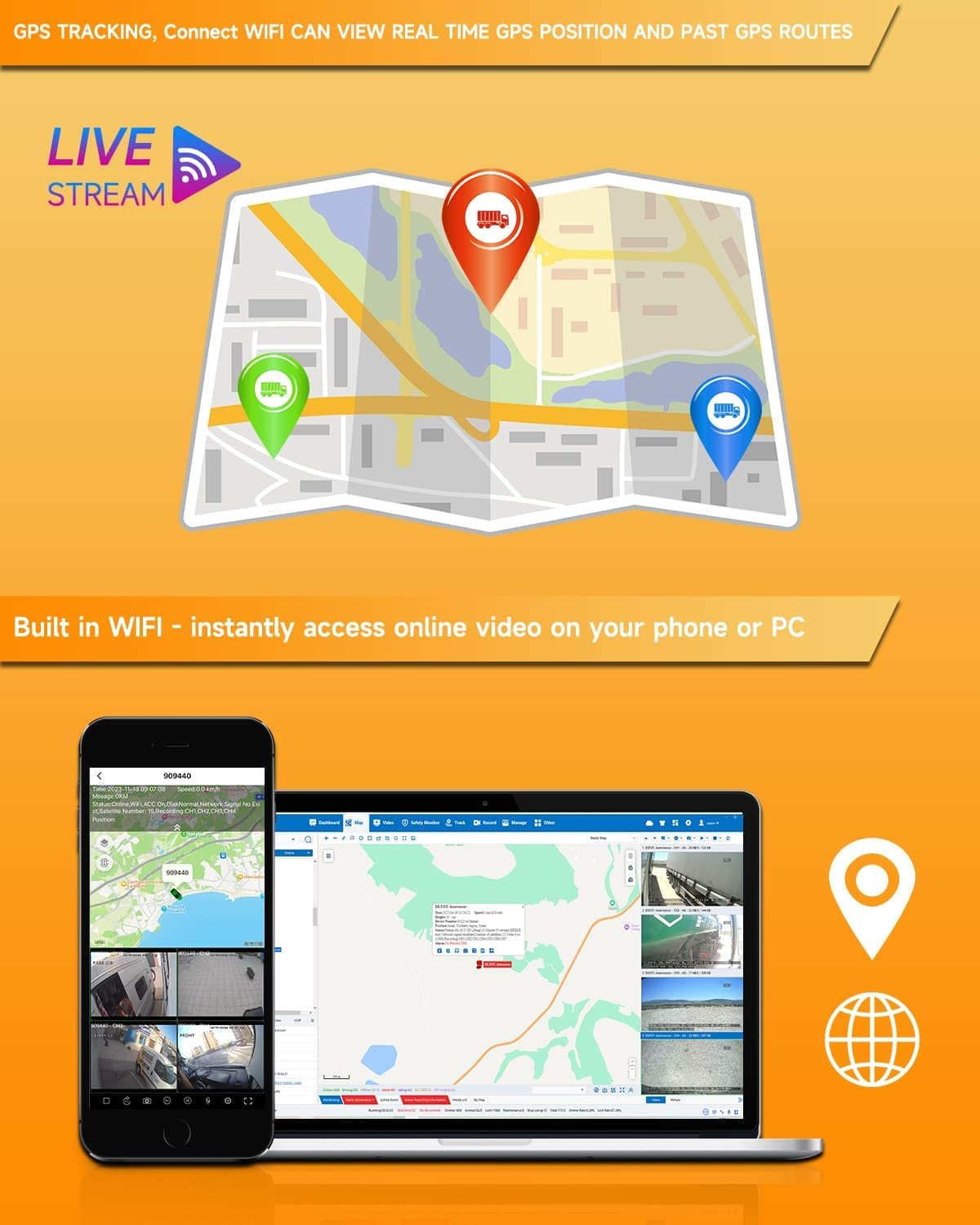 - Stay Connected, Stay Informed: Live Video Remote Viewing: Connect your MDVR to a vehicle's WiFi hotspot for seamless remote access. View and download footage from anywhere, making it perfect for efficient fleet management. Enjoy real-time monitoring on your PC, iOS, or Android smartphone.