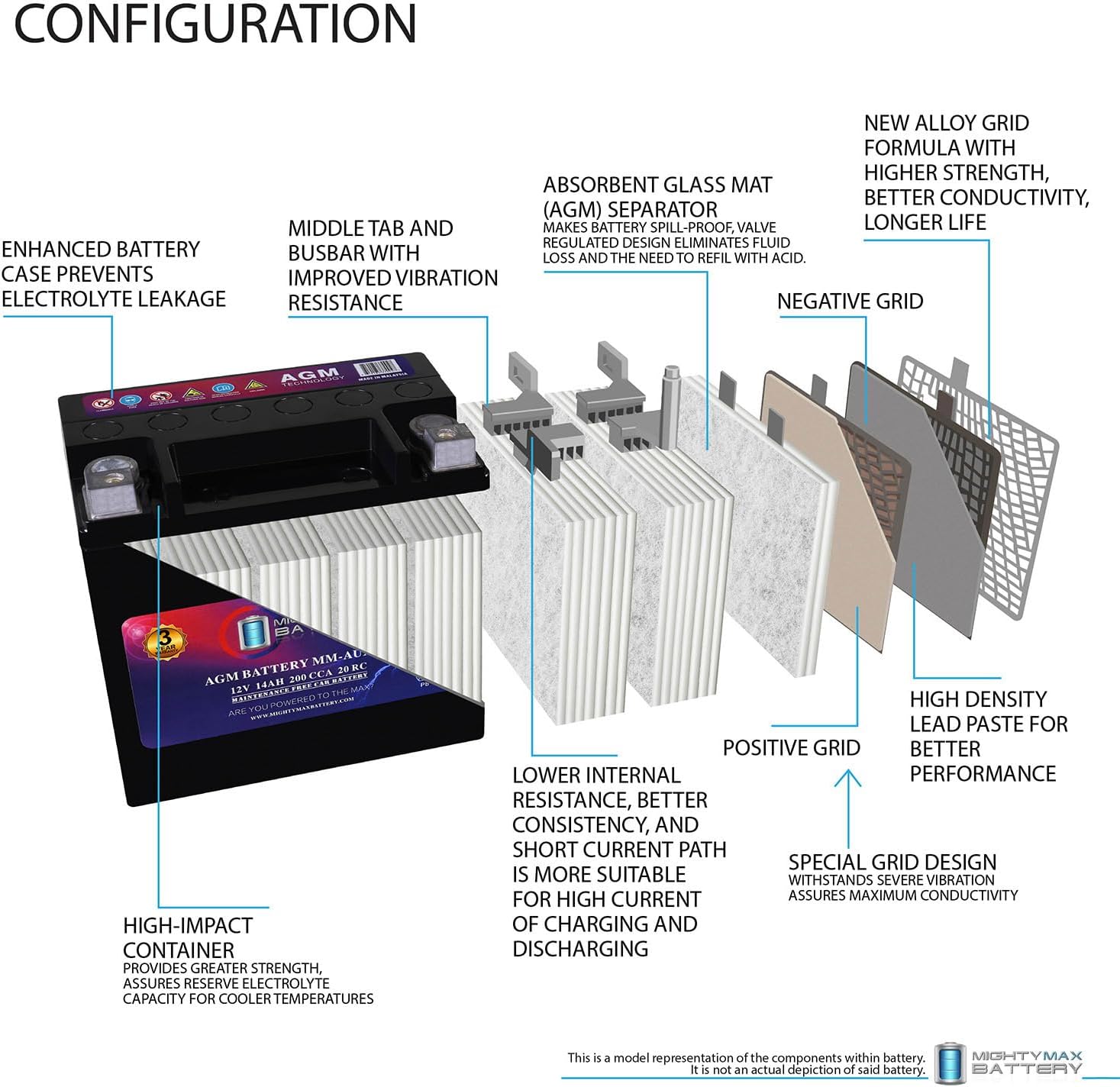 Mighty Max Battery MM-AUX14 Auxiliary Battery 12V 14Ah, 20RC, 200 CCA Rechargeable AGM Car Battery