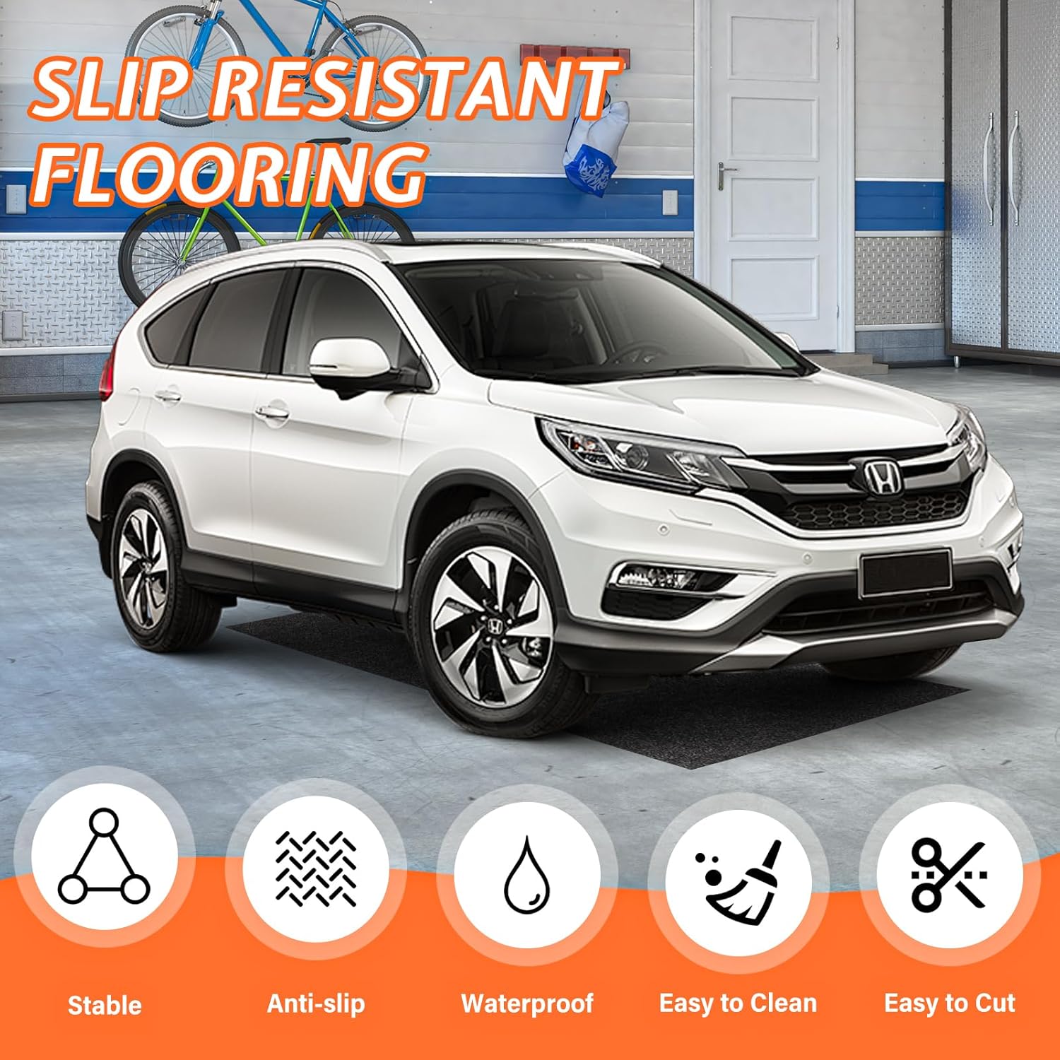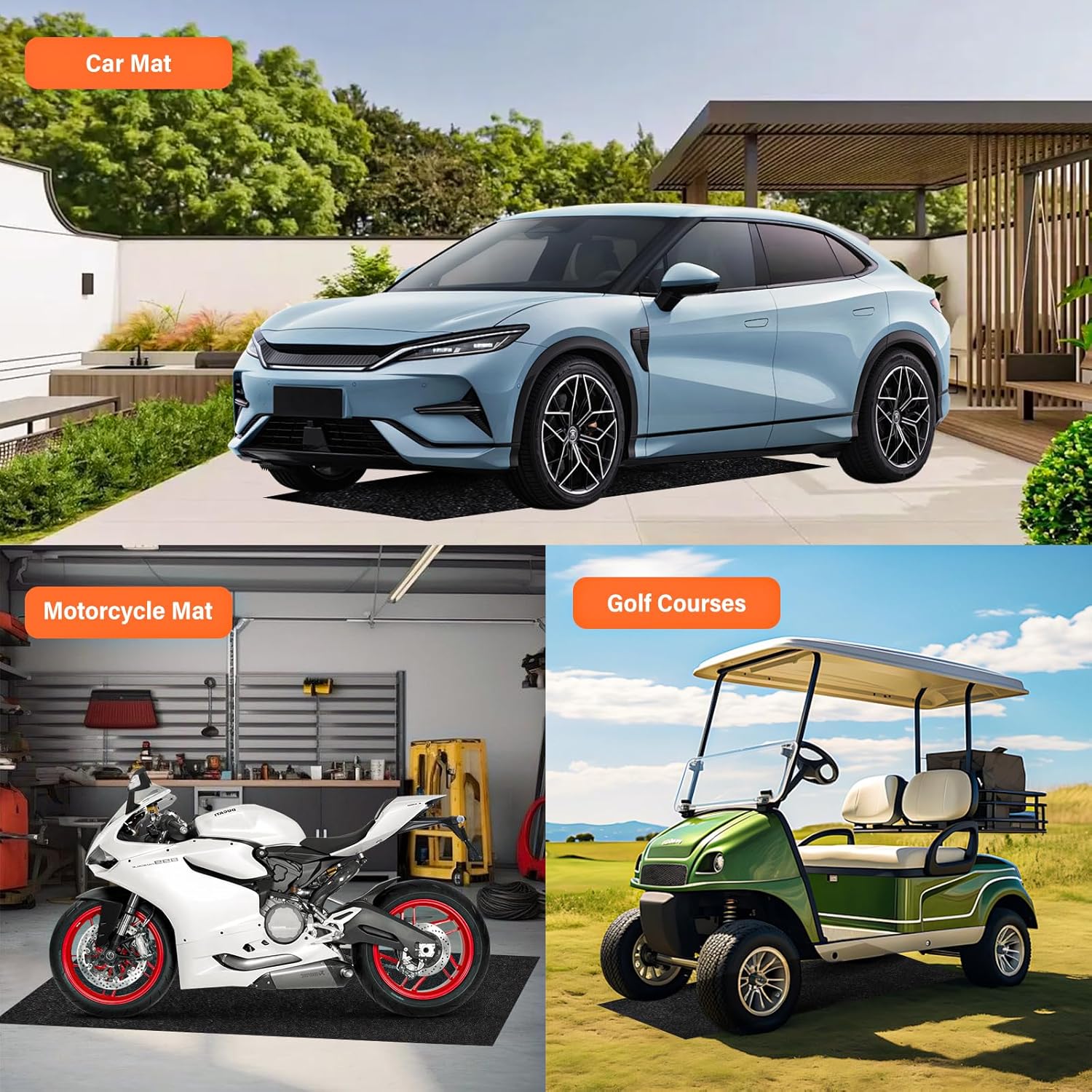- MULTIPURPOSE: Garage mat's size is 60" x 72". Our rubber mats for floor is tear and abrasion resistant, durable and reusable;It is great for vehicle oil changes and repairs;Garage floor mats can also be used for car trunks, cabinets, gardening tools, harvesters, pet gear, etc