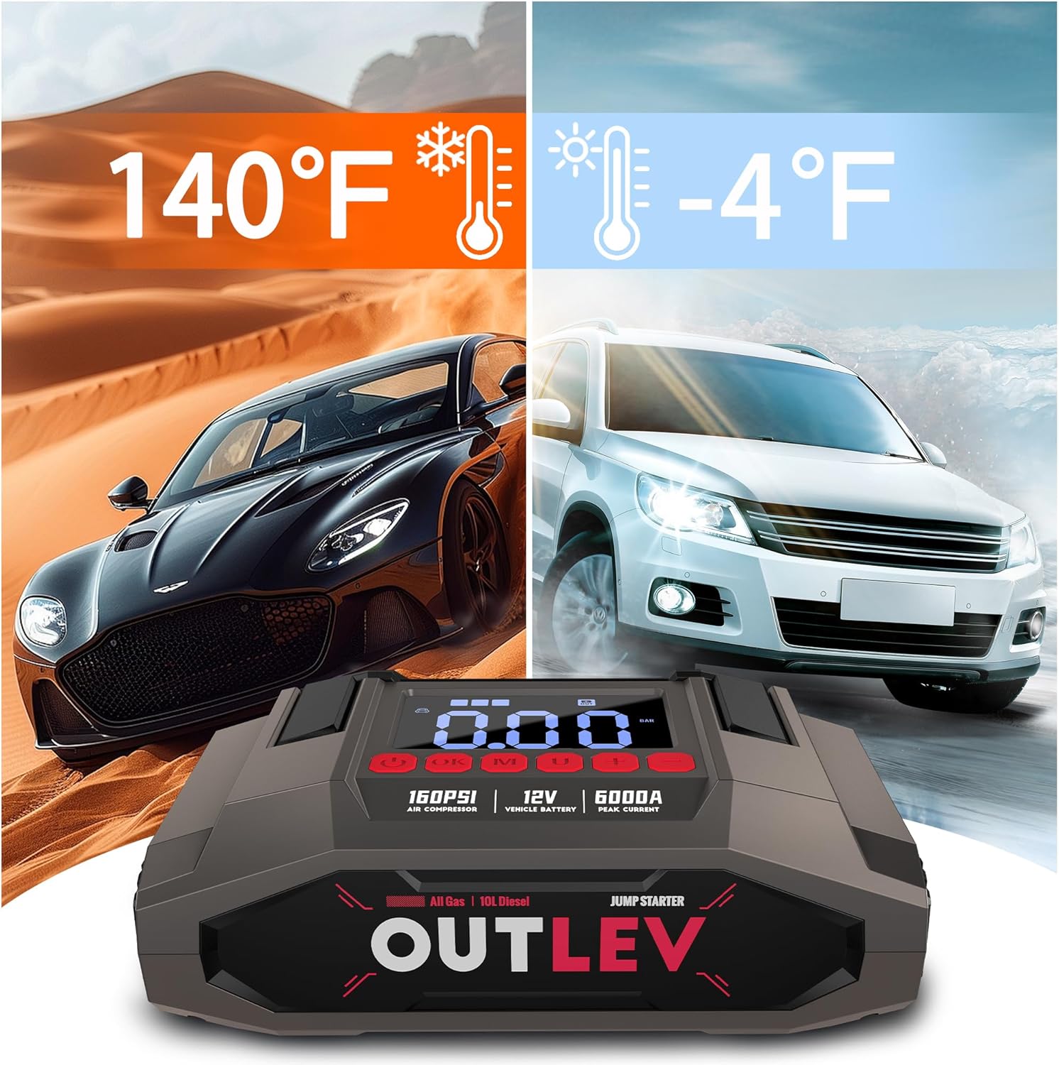 - POWERFUL & RELIABLE JUMP STARTING: Instantly revive dead batteries on all gasoline vehicles and massive diesel engines up to 10.0L (trucks, RVs, boats). Engineered to perform flawlessly in extreme US weather, from freezing -20Β°F winters to scorching 140Β°F summers. Your dependable roadside rescue for cars, trucks, motorcycles, boats, and RVs.