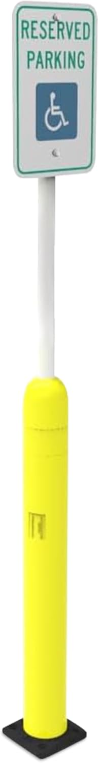 Impact Recovery - Sta-Rite Flexible Sign Post - Sign Holder - Handicap Parking Signs - Made in the USA - 102” with Yellow Bollard - Reserved Parking Signage