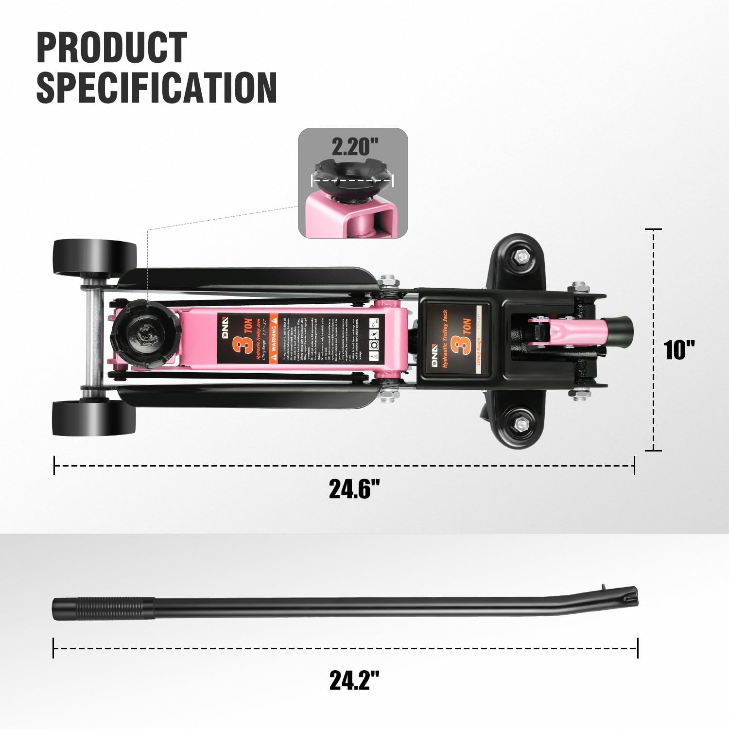 DNA MOTORING 3 Ton Low Profile Floor Jack, 3 tons (6000 lbs) Capacity Fast Lift Hydraulic Trolley Service/Floor Jack, 7.7 "-21" Lifting Range, Pink, TOOLS-00674-PK