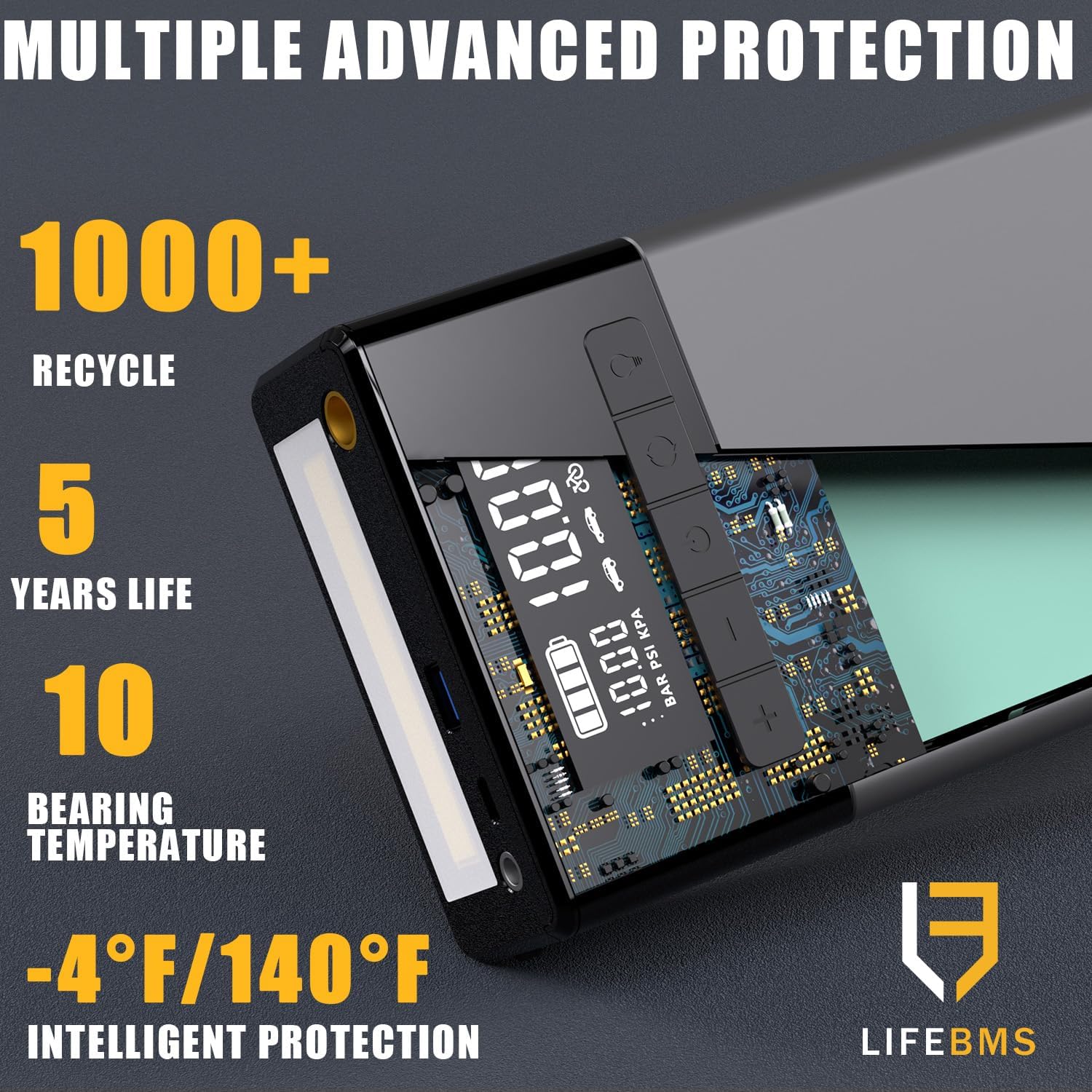 - Multiple Protections - VTOMAN X7 battery jumper starter portable is upgraded smart chip can start reliably in extreme temperatures (-4ยฐF to 140ยฐF), and has 10 safety protections including overcharge, overcurrent, short circuit, reverse polarity, low temperature, high temperature, overvoltage, overload, anti-spark, reverse charging.