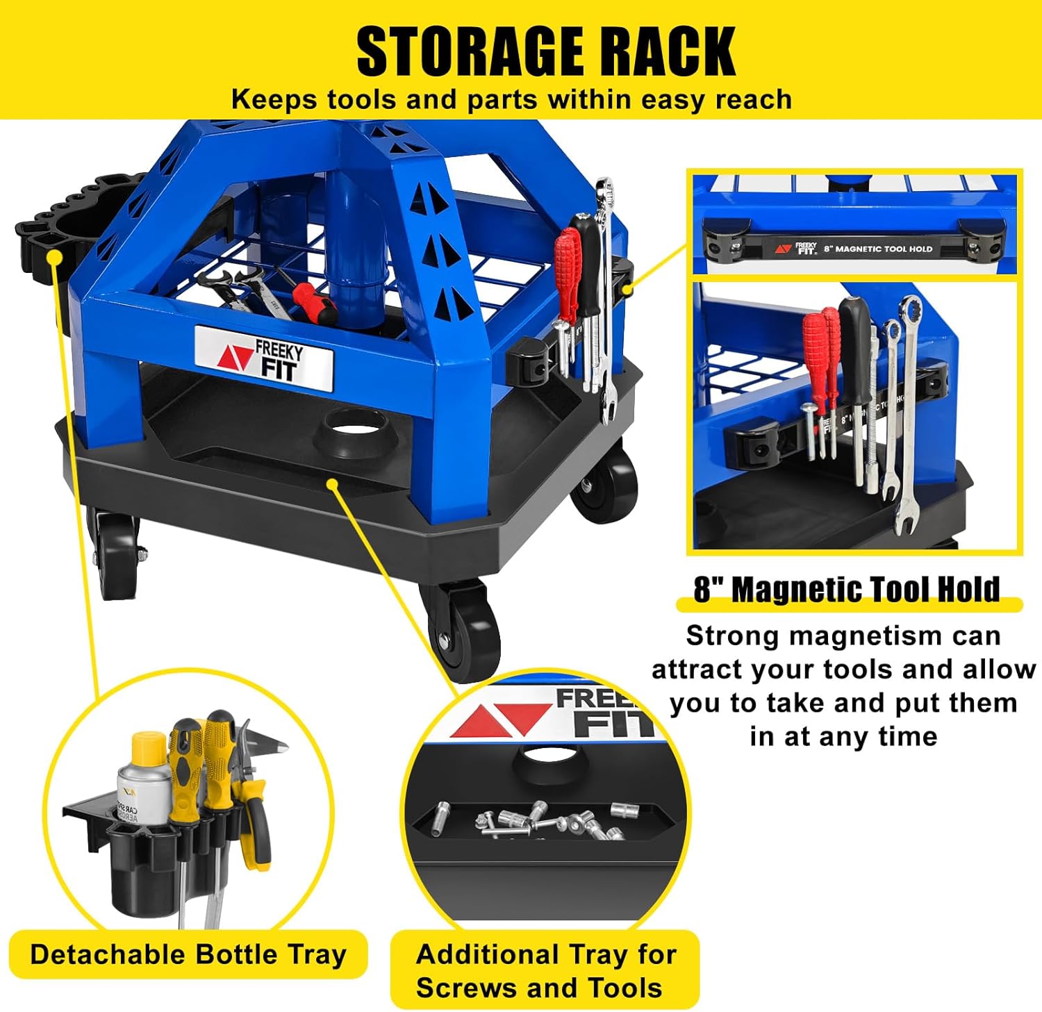 - Ease to Move: Equipped with 4 pcs 360°universal casters, the workshop stool can be flexibly steered even on complex surfaces. Two Layers tool racks casters feature a compression mechanism and are Quiet, Durable and Smooth movement on different surfaces