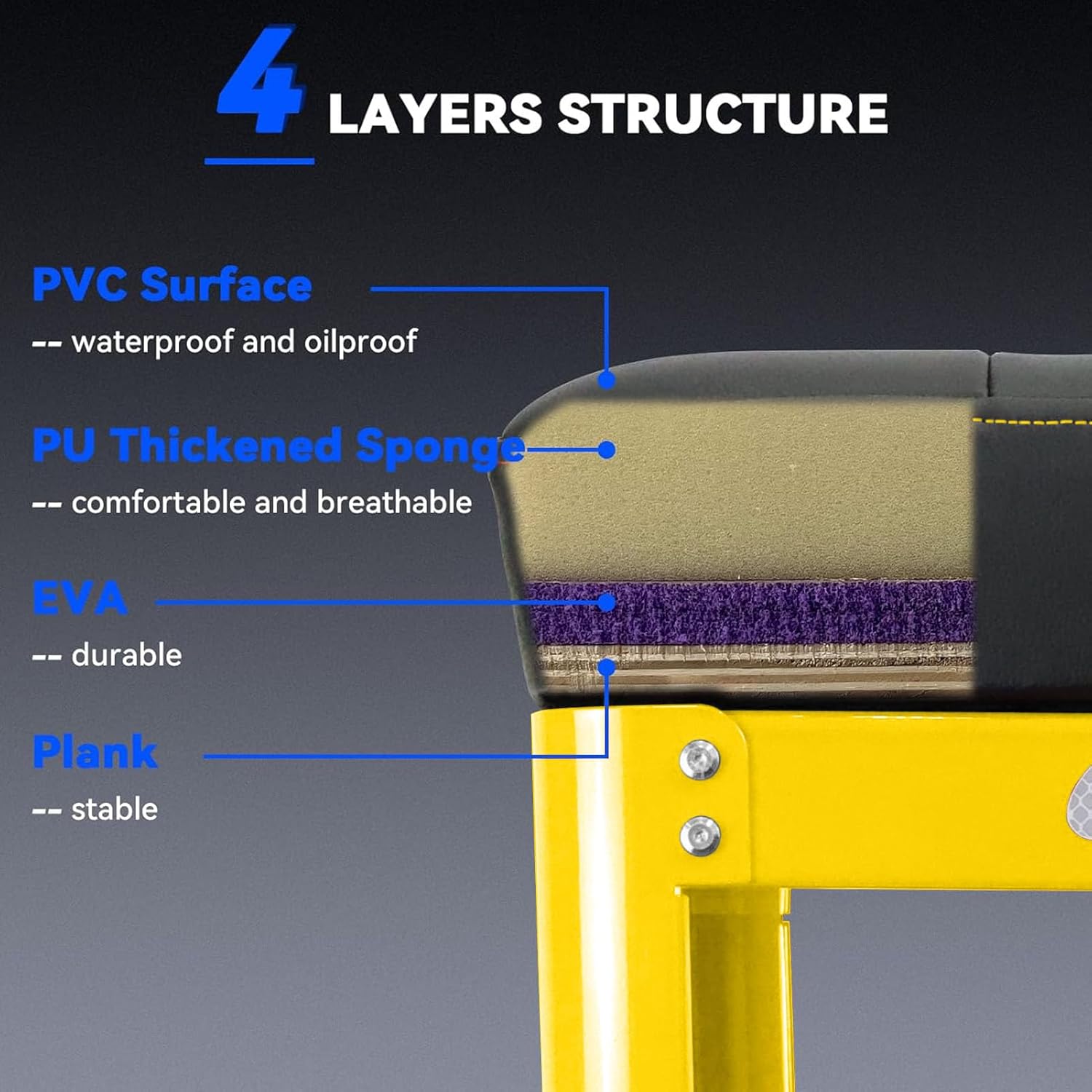 - 【4 layers Structure】The creeper seat cushion is 3.35 inches thick and consists of FOUR layers structure. The first layer is a solid wooden plank, the second layer is a durable EVA, the third layer is a comfortable and breathable PU thickened sponge, and the fourth layer is a waterproof and oilproof PVC surface. Soft, Firm, and Comfortable