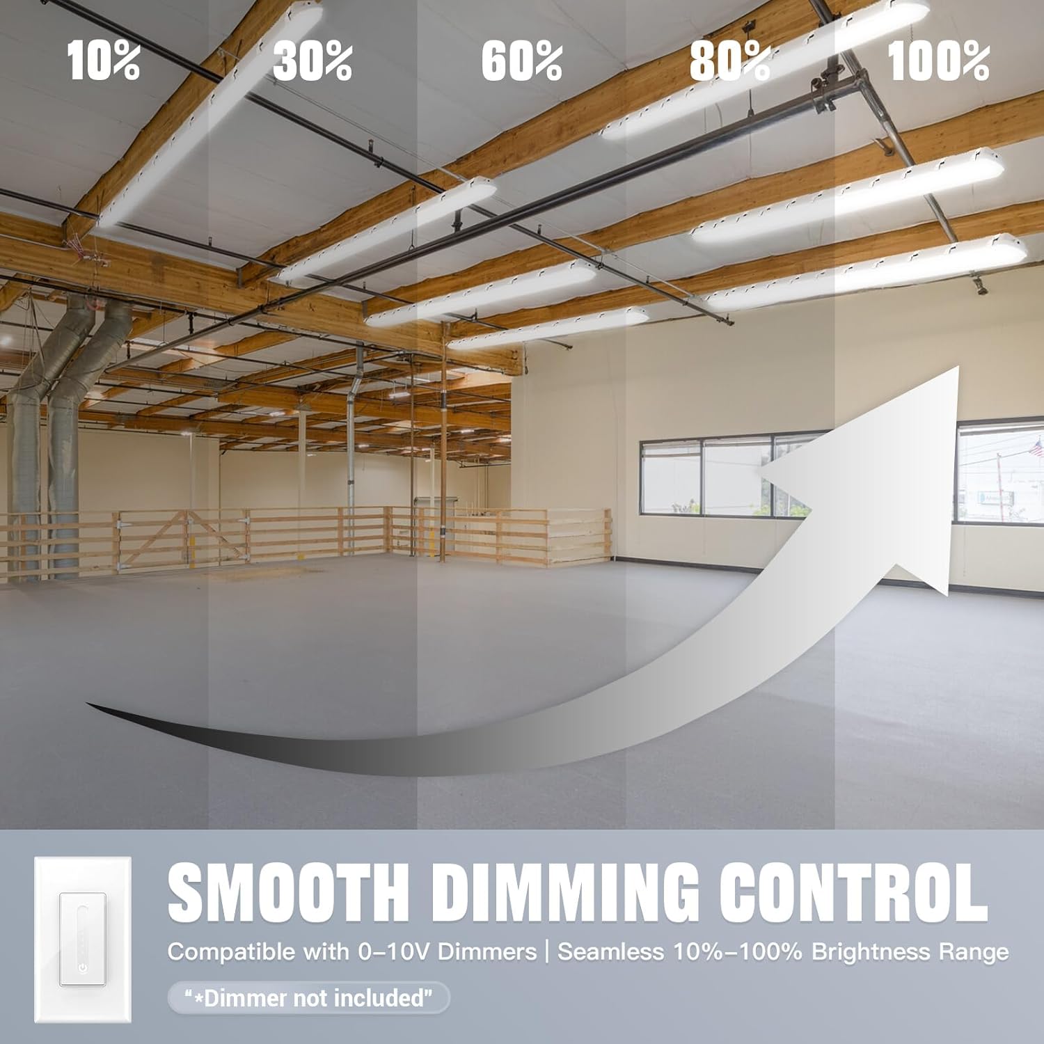 - 【IP66 High Waterproof Level】This 8foot Led light fixtures passed IP66 waterproof testing, IK08 impact rated, and ETL certified. It features a fully sealed polycarbonate lens and non-corrosive body, protecting against dust, dirt, and moisture with a hermetic design. They are also compatible with 0-10V low voltage dimmers (dimmers not included).