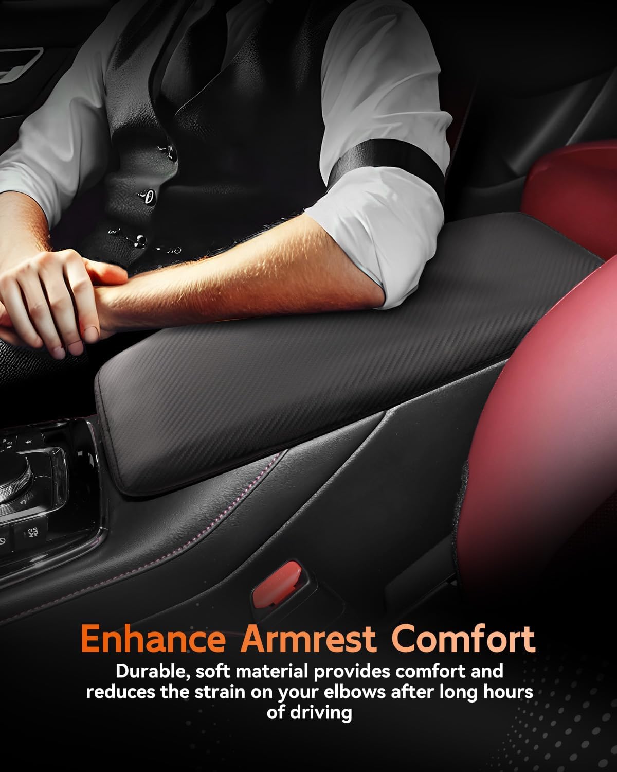 - [Easy To Install] Designed with a flexible elastic band to secure it to the center console (no tools required). With super stretch and pull resistance, it will not change the open/close function of the armrest box.