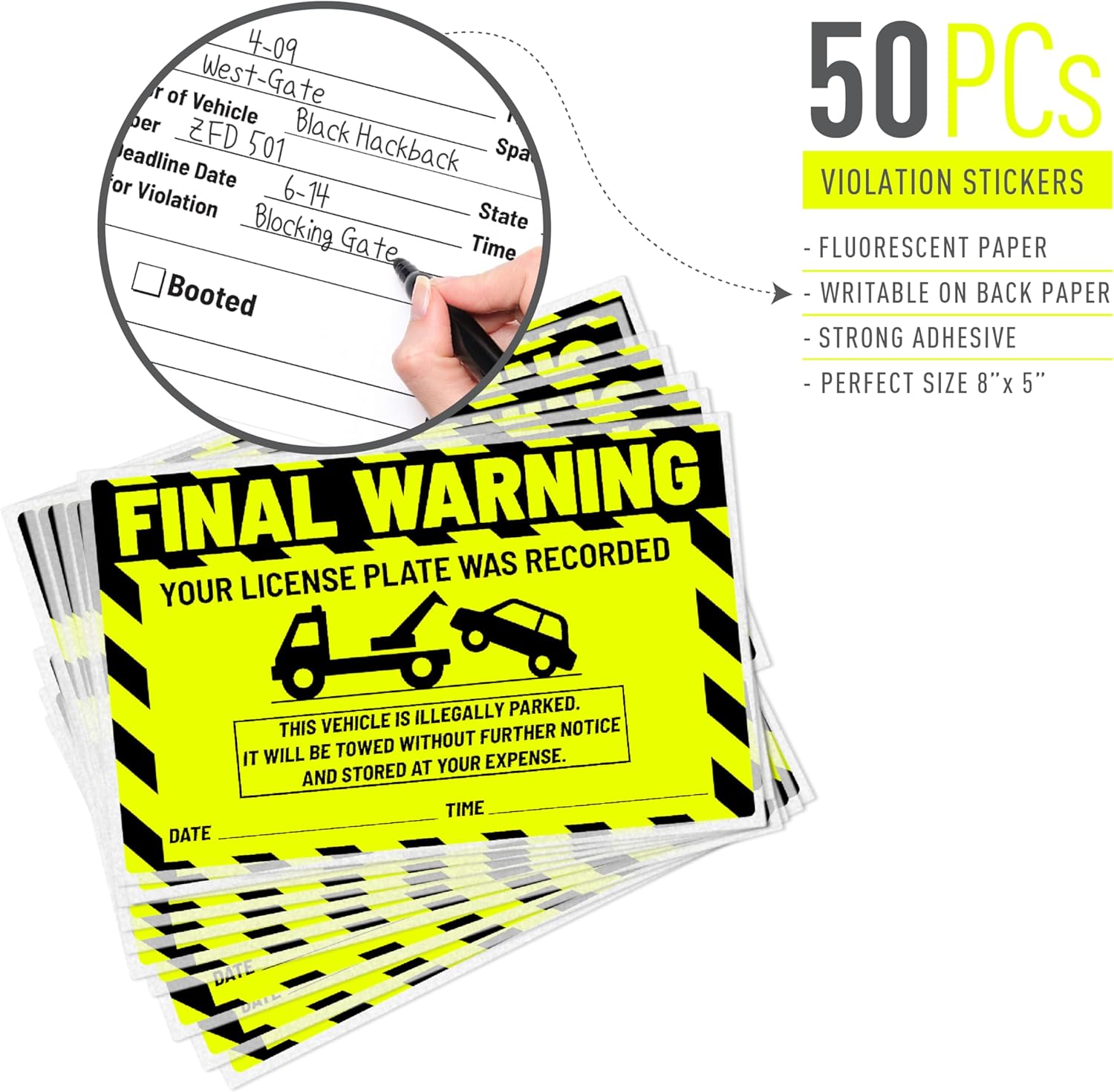 - Comes With: You will receive 50 green parking violation towing stickers for parking attendant