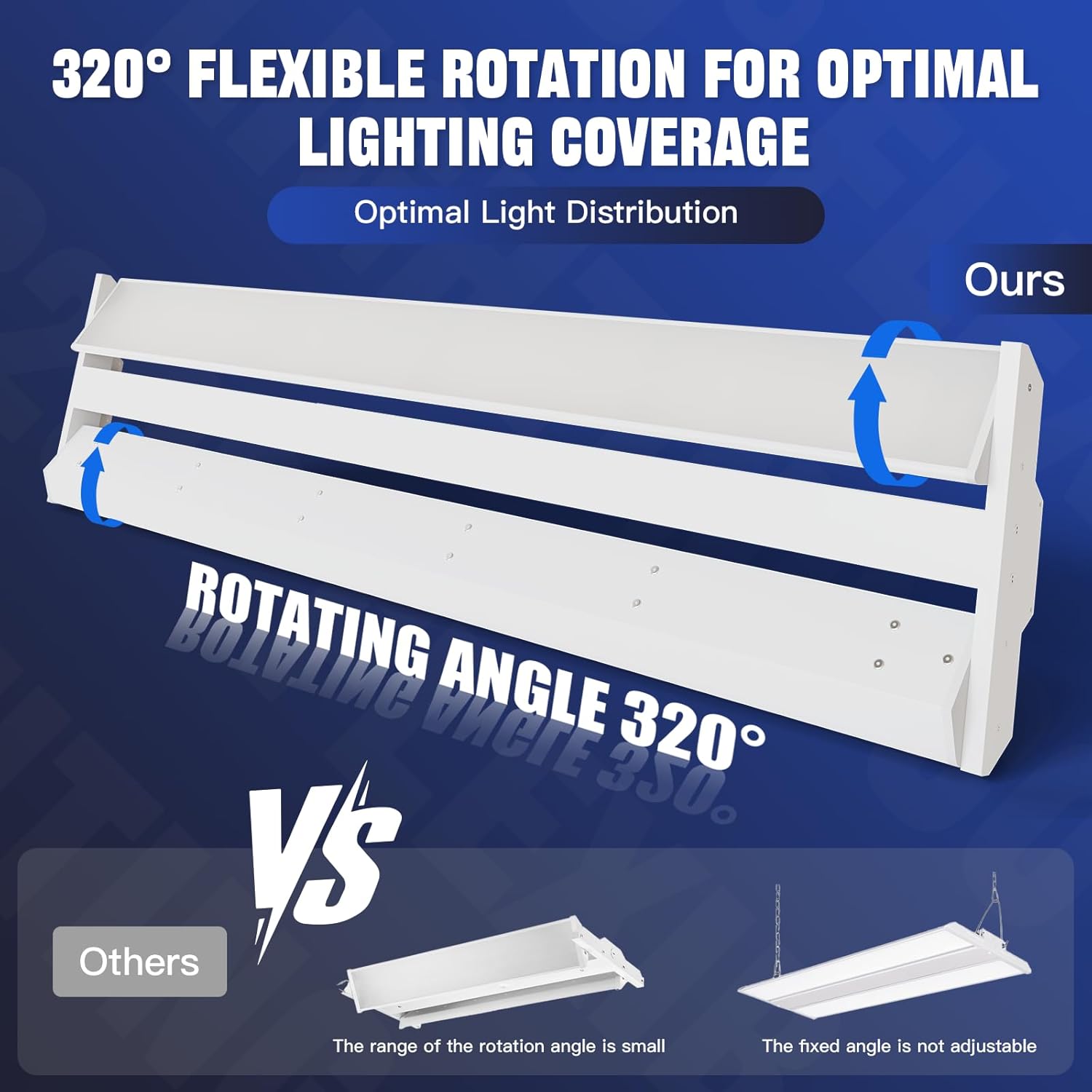 - 【High Quality 360° Adjustable Linear High Bay Lights】 The 300/240/200W dimmable LED Linear high bay light has a 360-degree rotation. Easily adjust it before installation. Ideal for factory workbenches, warehouse shelves, or parking lot corners. It has 5-year warranty. After installation, it can avoid frequent quality issues and multiple repairs, reducing and avoiding subsequent maintenance and labor costs. Making you enjoy an efficient lighting experience for work and life.